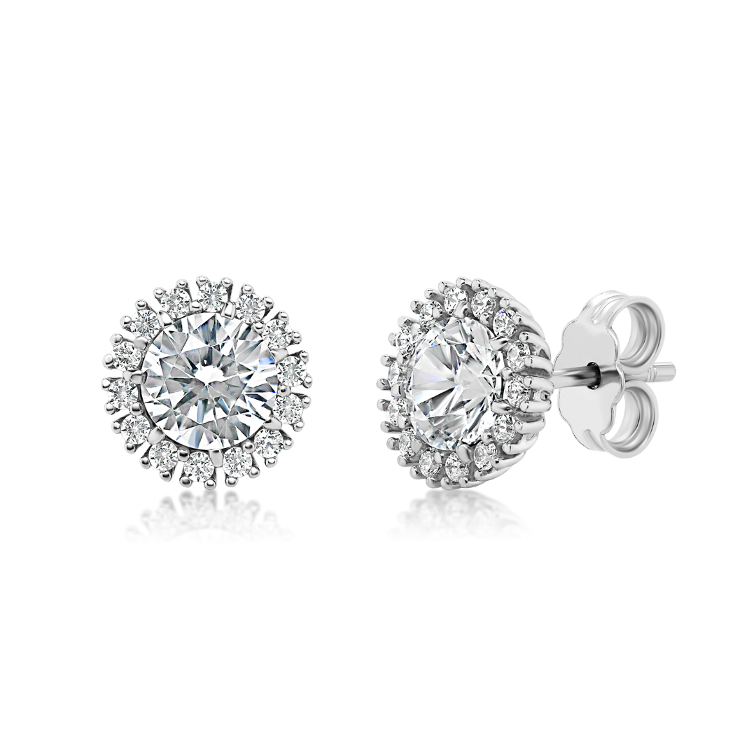 Cercei din aur alb de 14K cu pietre Cubic Zirconia albe.