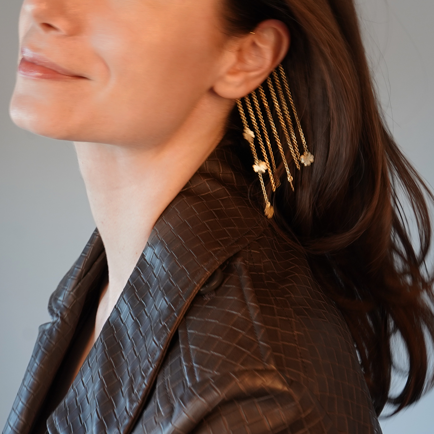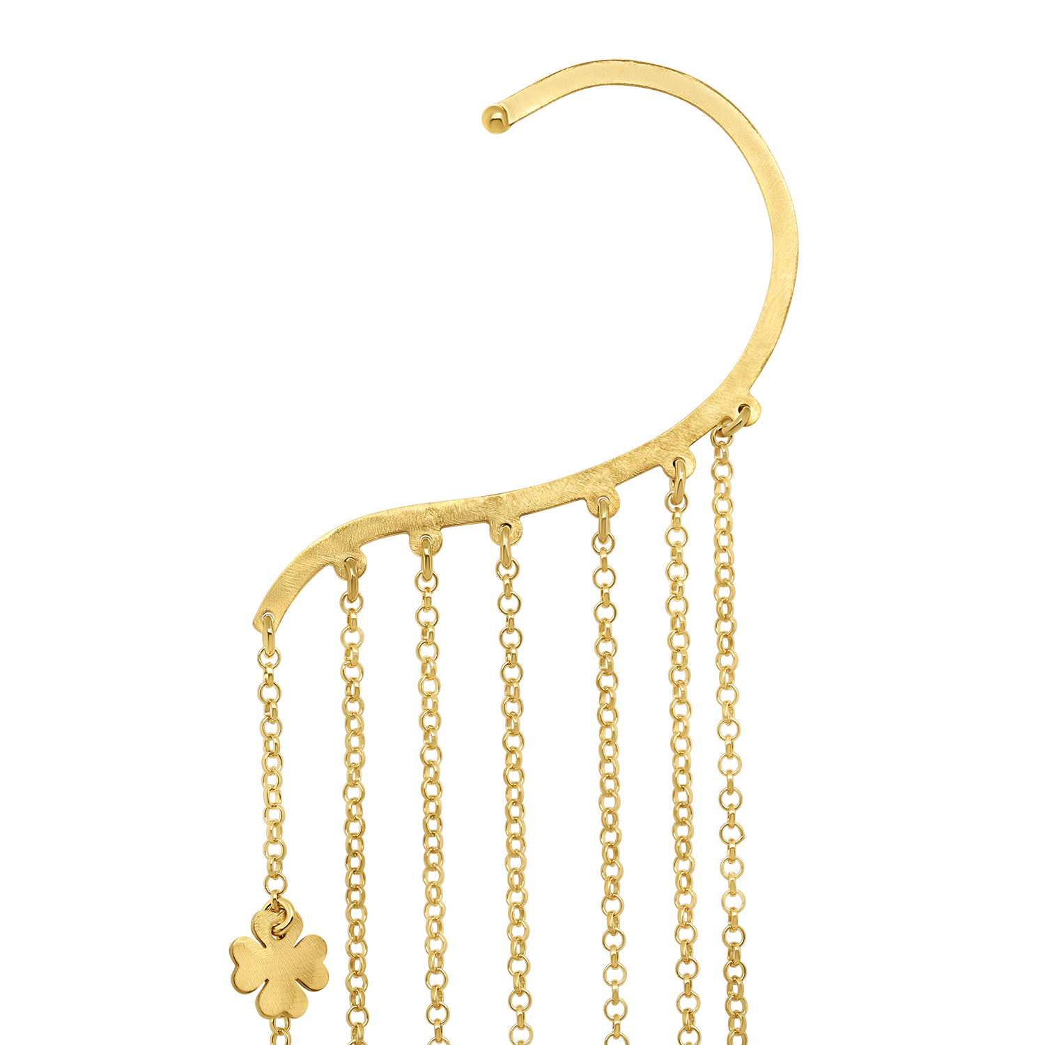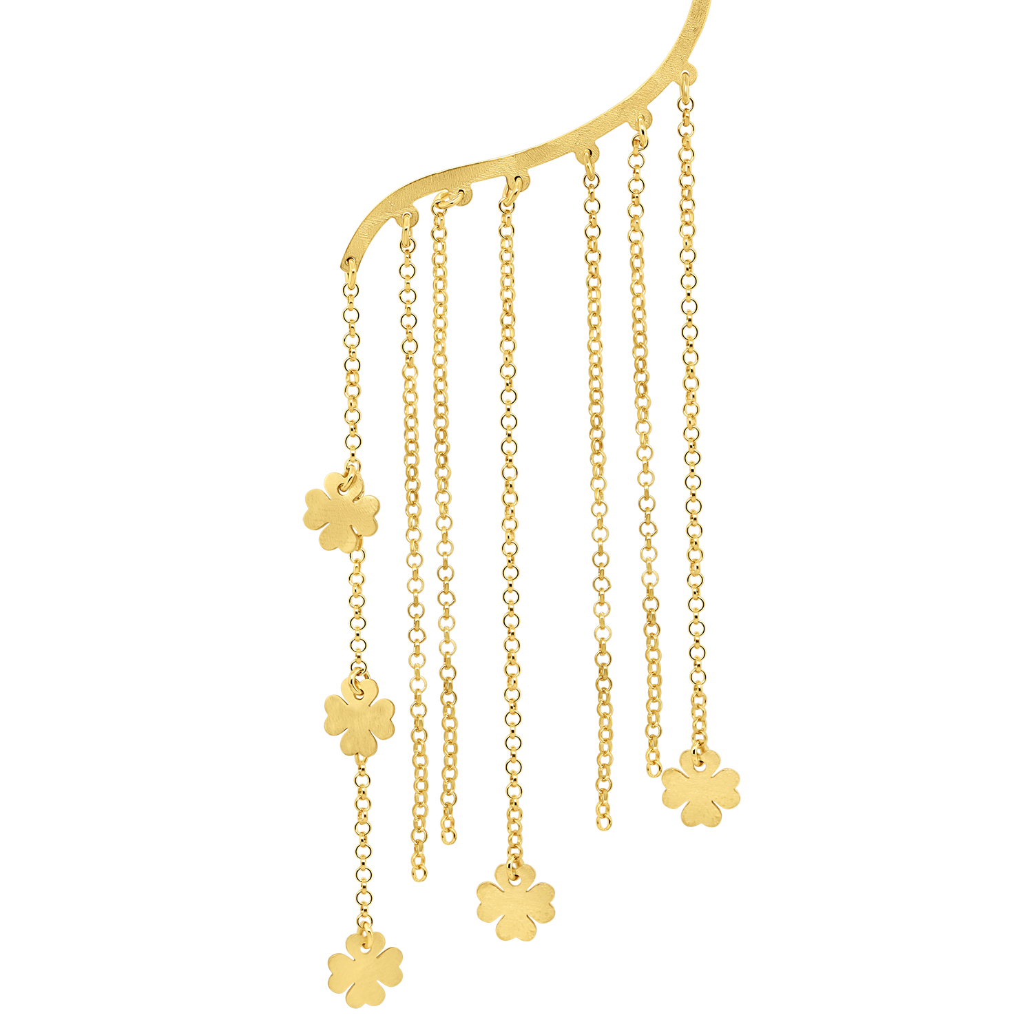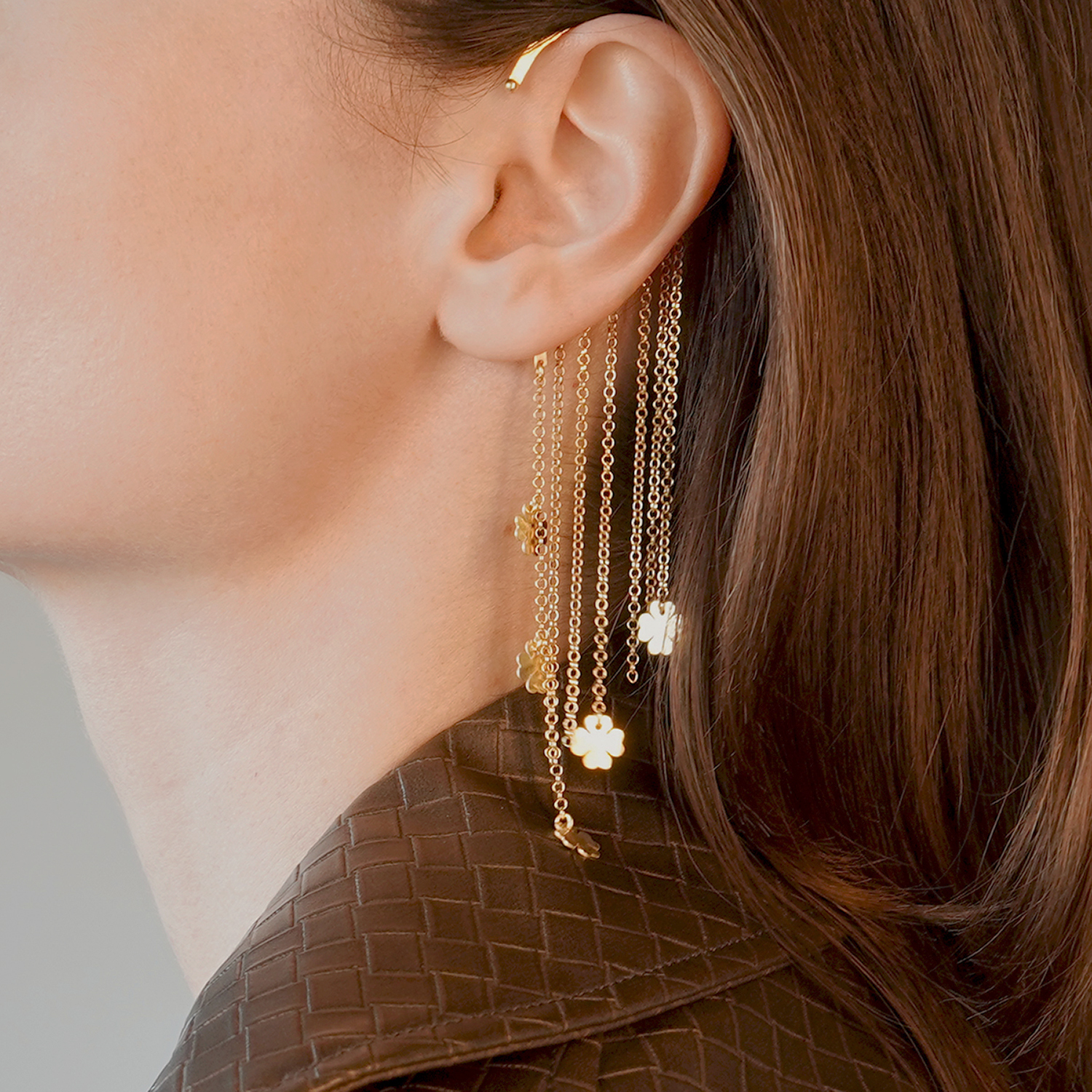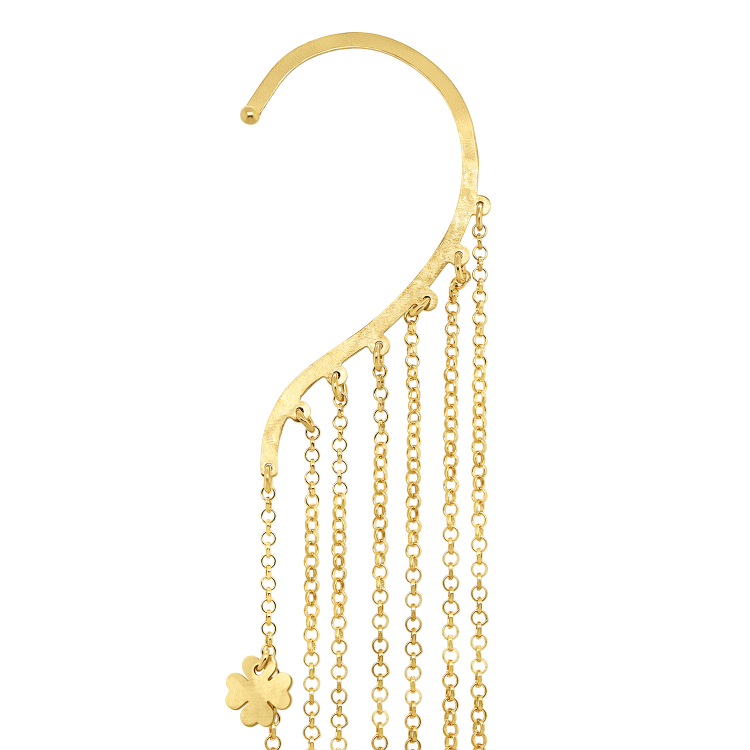 Cercel din aur galben de 14K cu lanțuri și pandantive trifoi