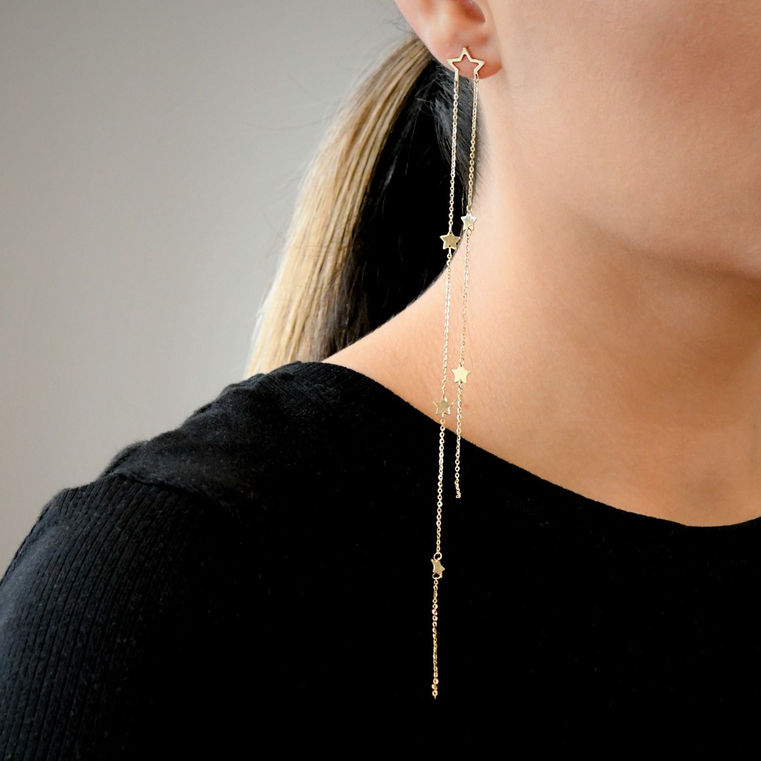 Cercel din aur galben de 14K cu elemente în formă de stea.