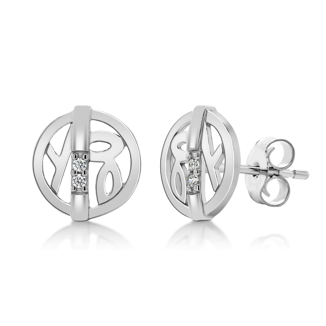 Cercei din aur alb de 14K cu elemente decupate și pietre cubic zirconia.