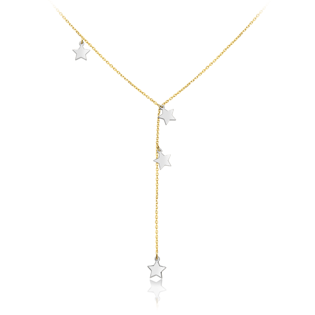 Lanț reglabil din aur galben de 14K, cu pandantive din aur alb.
