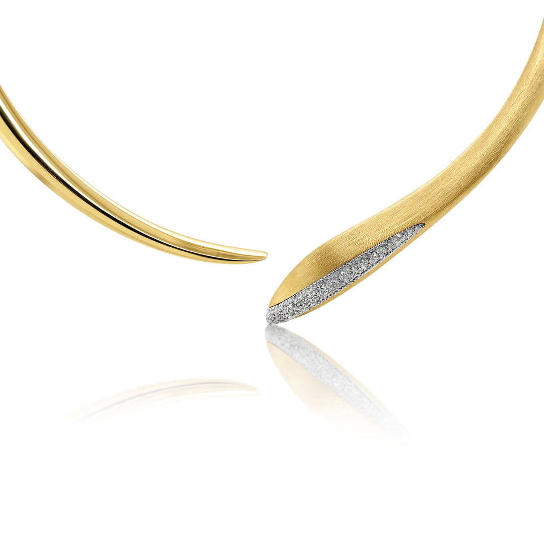 Colier fix cu efect satinat din aur galben de 14K și zirconii incolore.