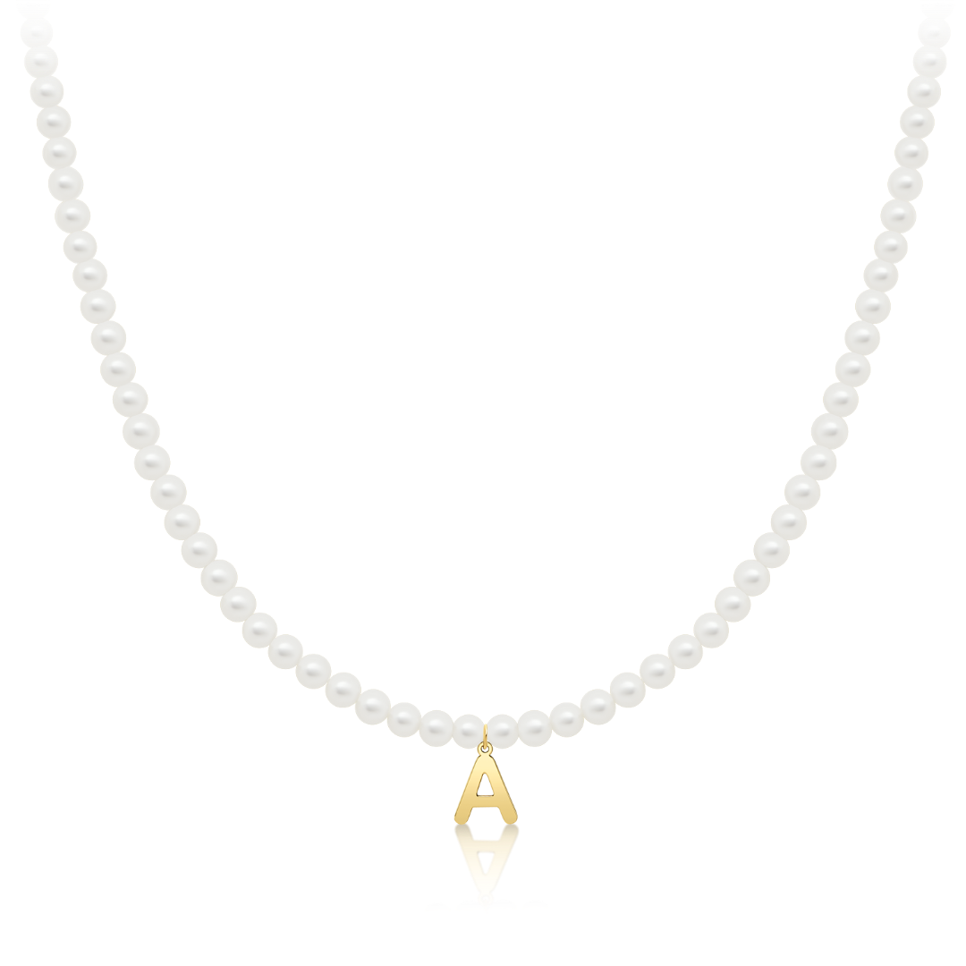 Colier cu perle și pandantiv din aur galben de 14K litera A