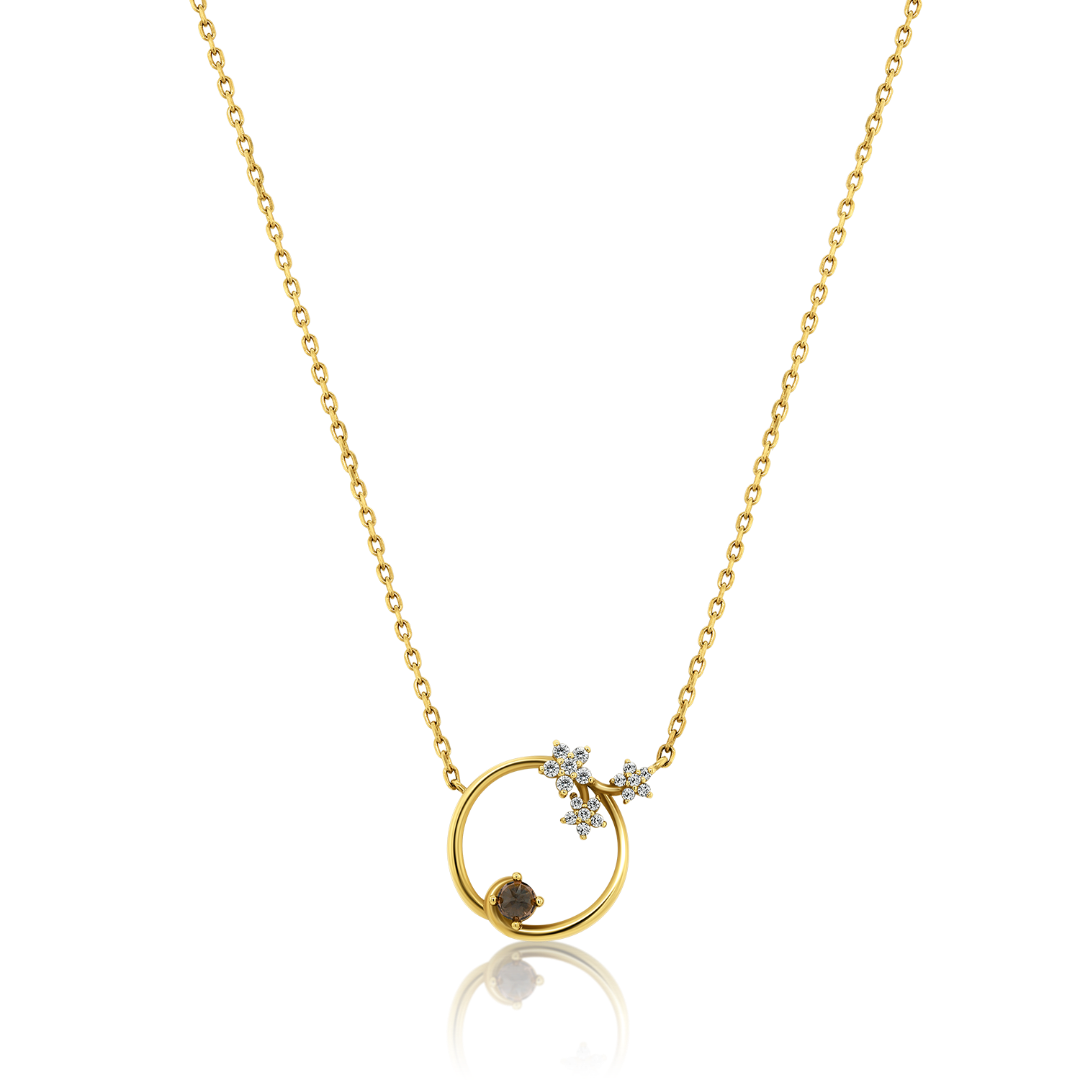 Lanț din aur galben de 14K și pandantiv cu pietre Cubic Zirconia.