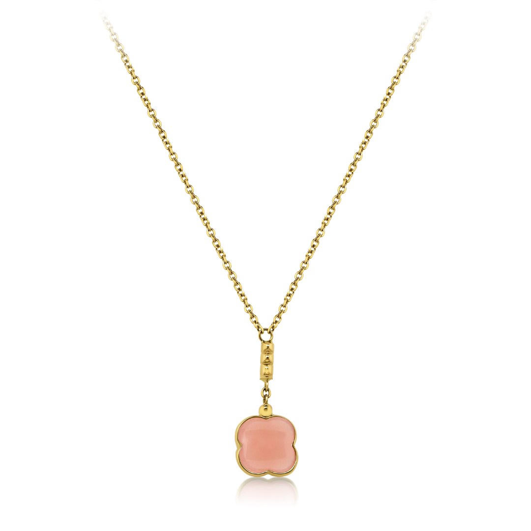 Colier din aur galben si pandantiv cu Pink Quartz