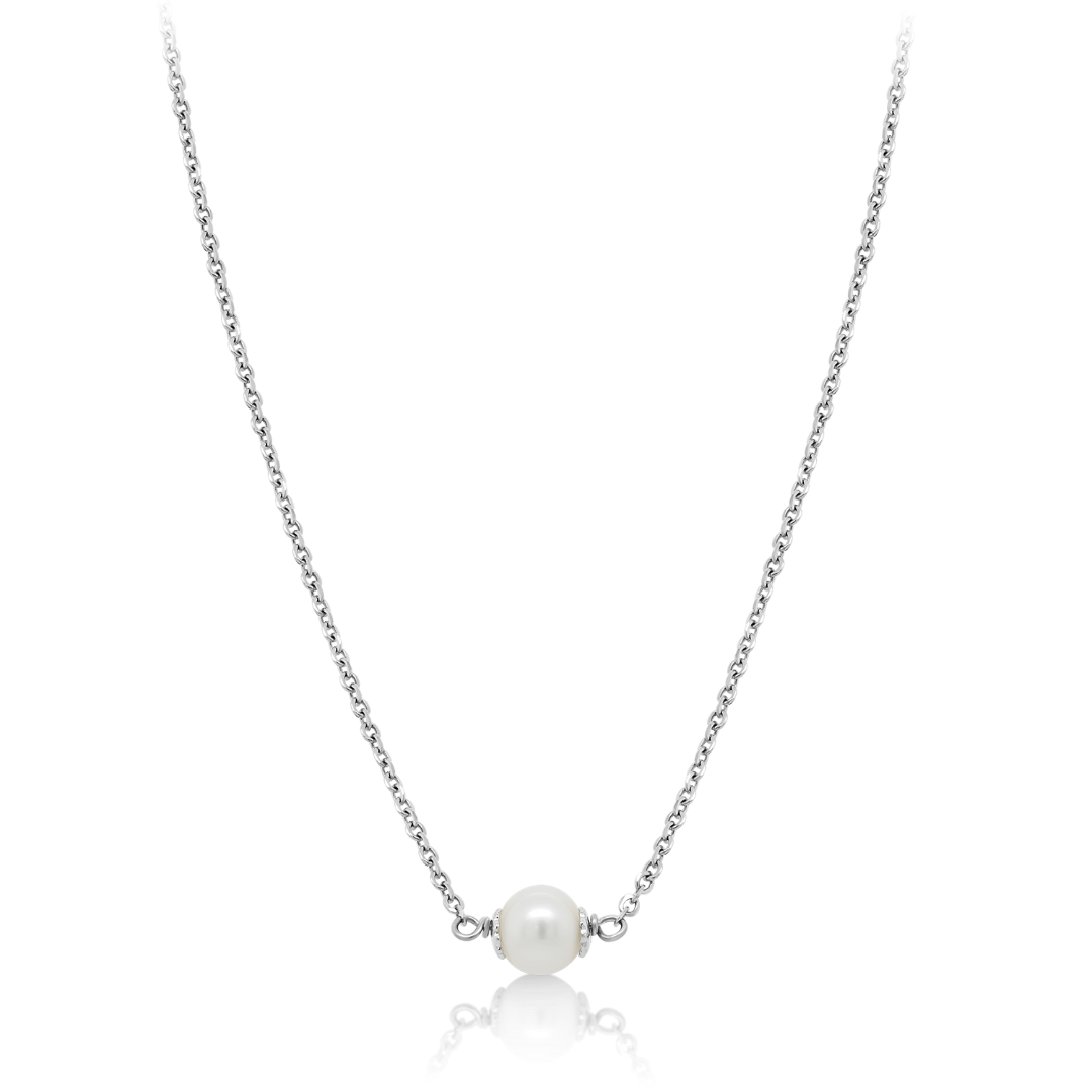 Lanț din aur alb de 14K și pandantiv cu Perlă.