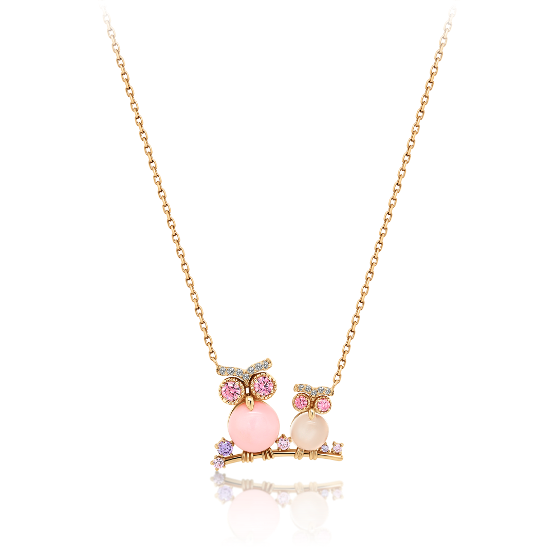 Lanț din aur roz de 14K și pandantiv cu Topaz și Pink Quartz