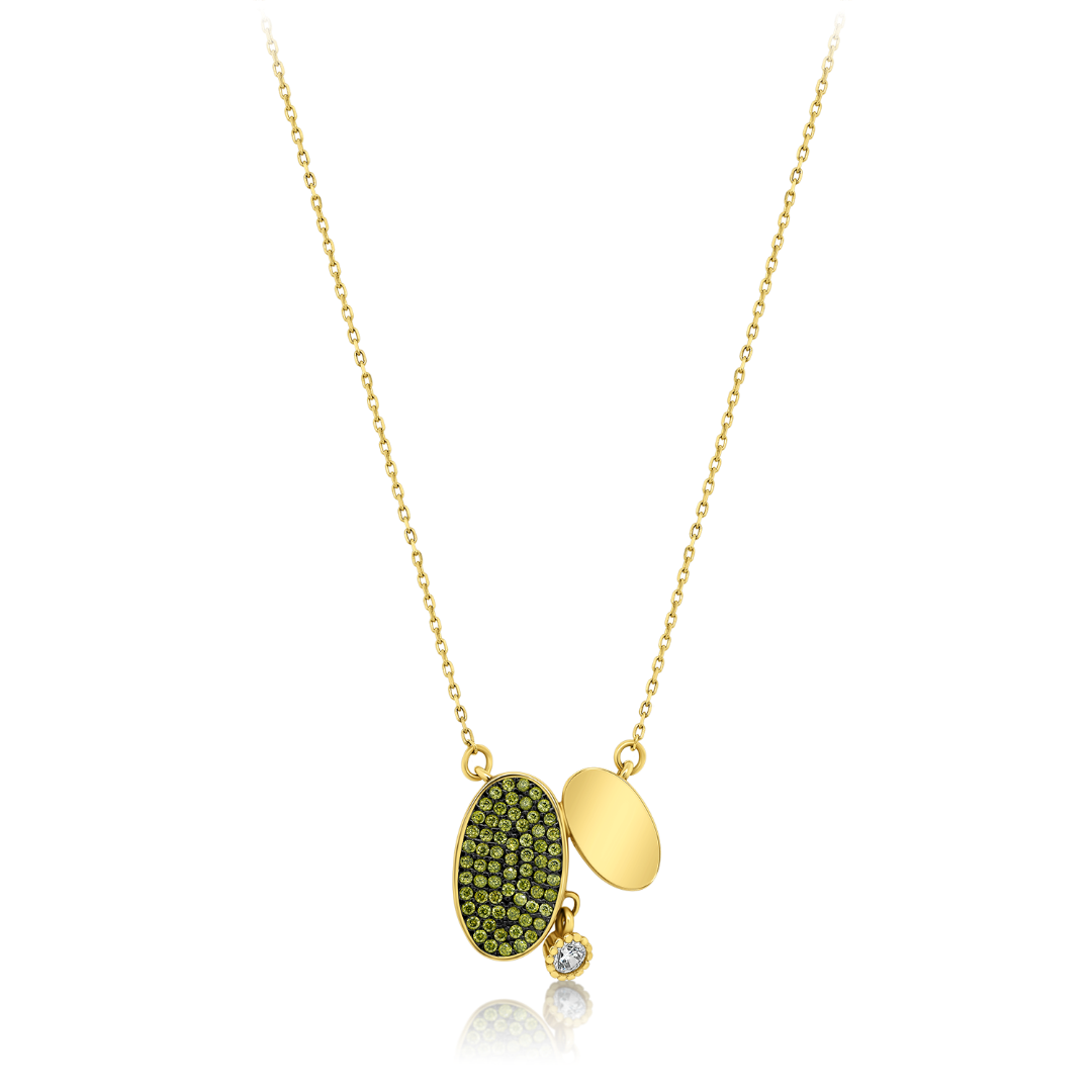 Lant din aur galben de 14K și pandantiv cu pietre Cubic Zirconia verzi.