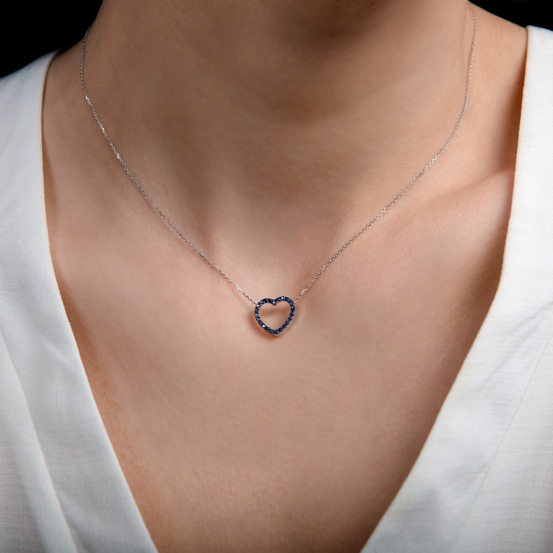 Colier din aur alb de 18K cu Safire albastre naturale și rodiu negru.