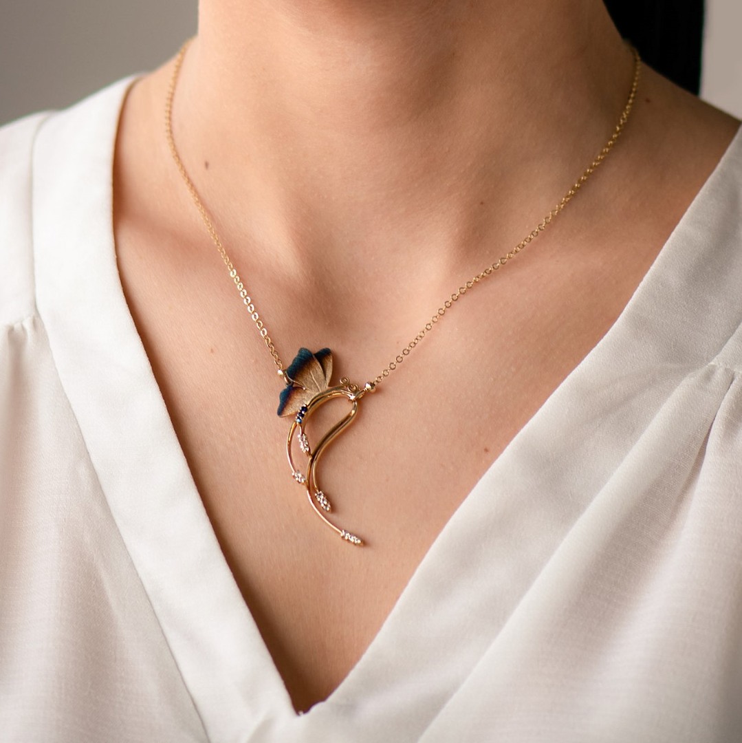 Lanț din aur galben de 14K și pandantiv cu Safire naturale