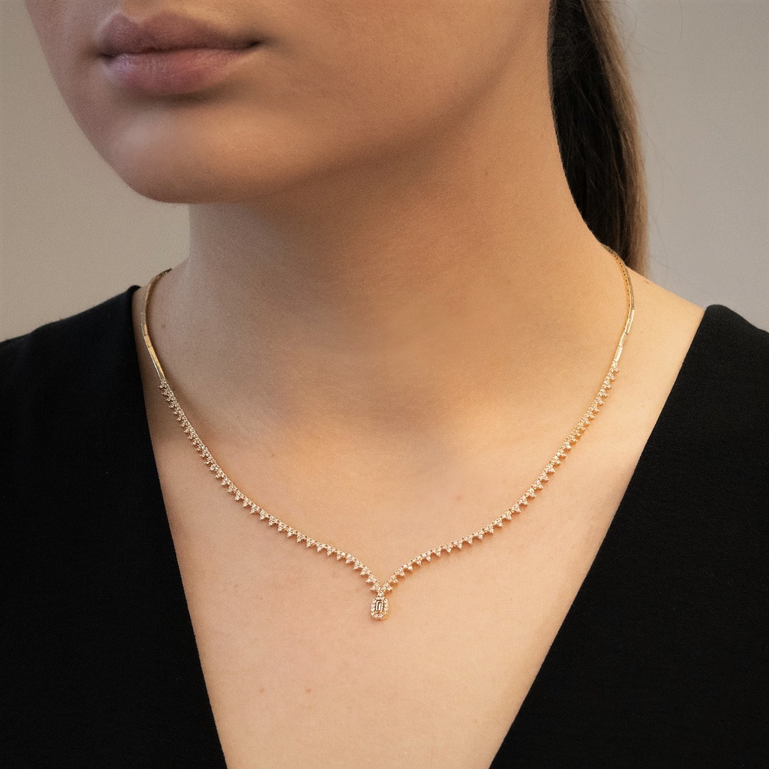 Colier din aur galben de 14K cu pietre Cubic Zirconia albe.