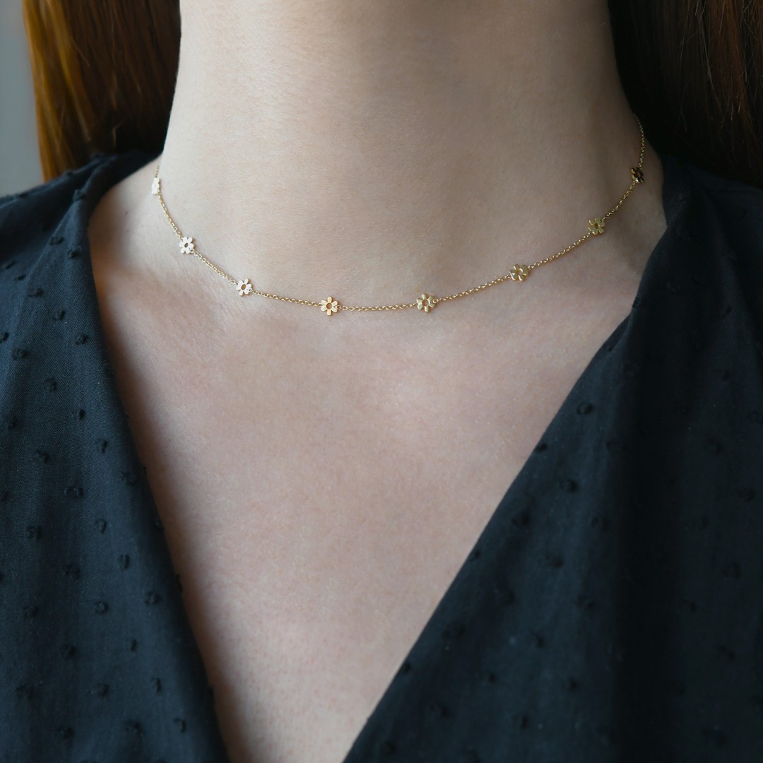 Colier din aur galben de 14K cu pandantive în formă de floare.