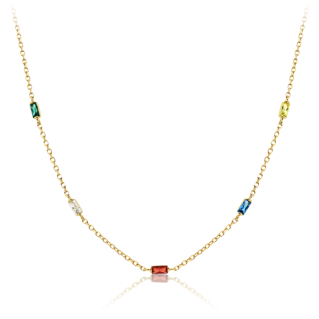 Colier din aur galben de 14K, cu pietre cubic zirconia multicolore.