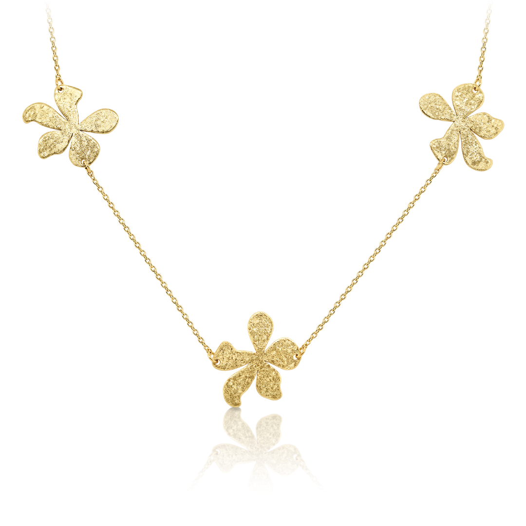Colier din aur galben de 14K cu elemente florale satinate