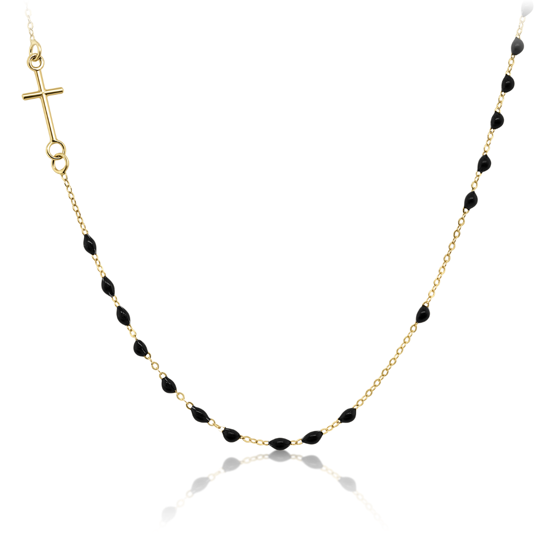 Colier din aur galben de 14K cu Email negru și element cruce.