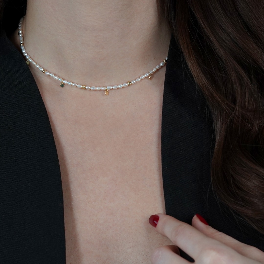 Colier din aur galben de 14K cu Perle albe de cultură.