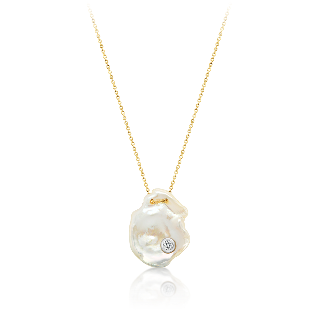 Colier din aur galben de 18K, cu Sidef și Diamant natural