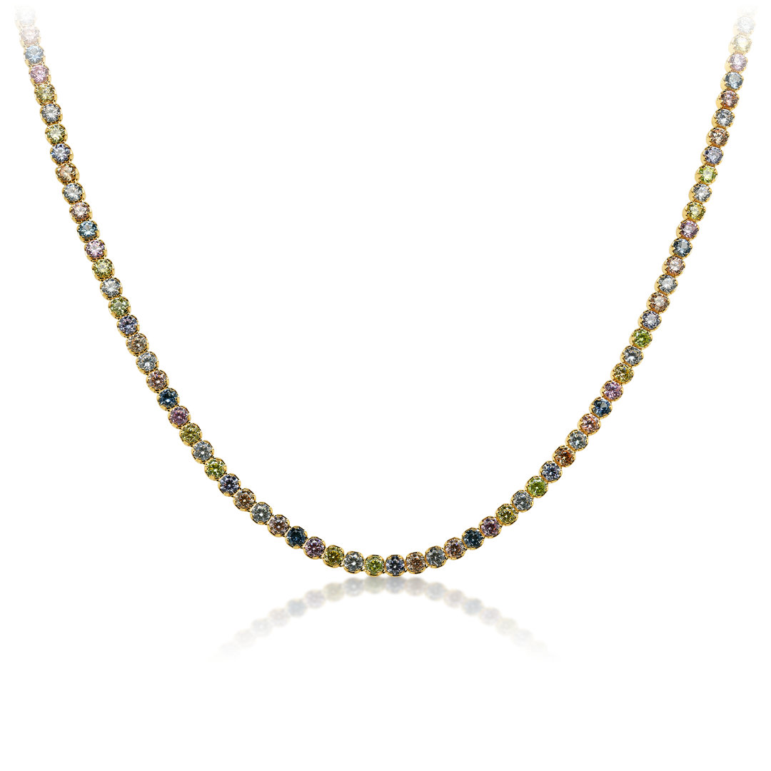 Colier Tennis din aur galben de 14K cu pietre Cubic Zirconia colorate.
