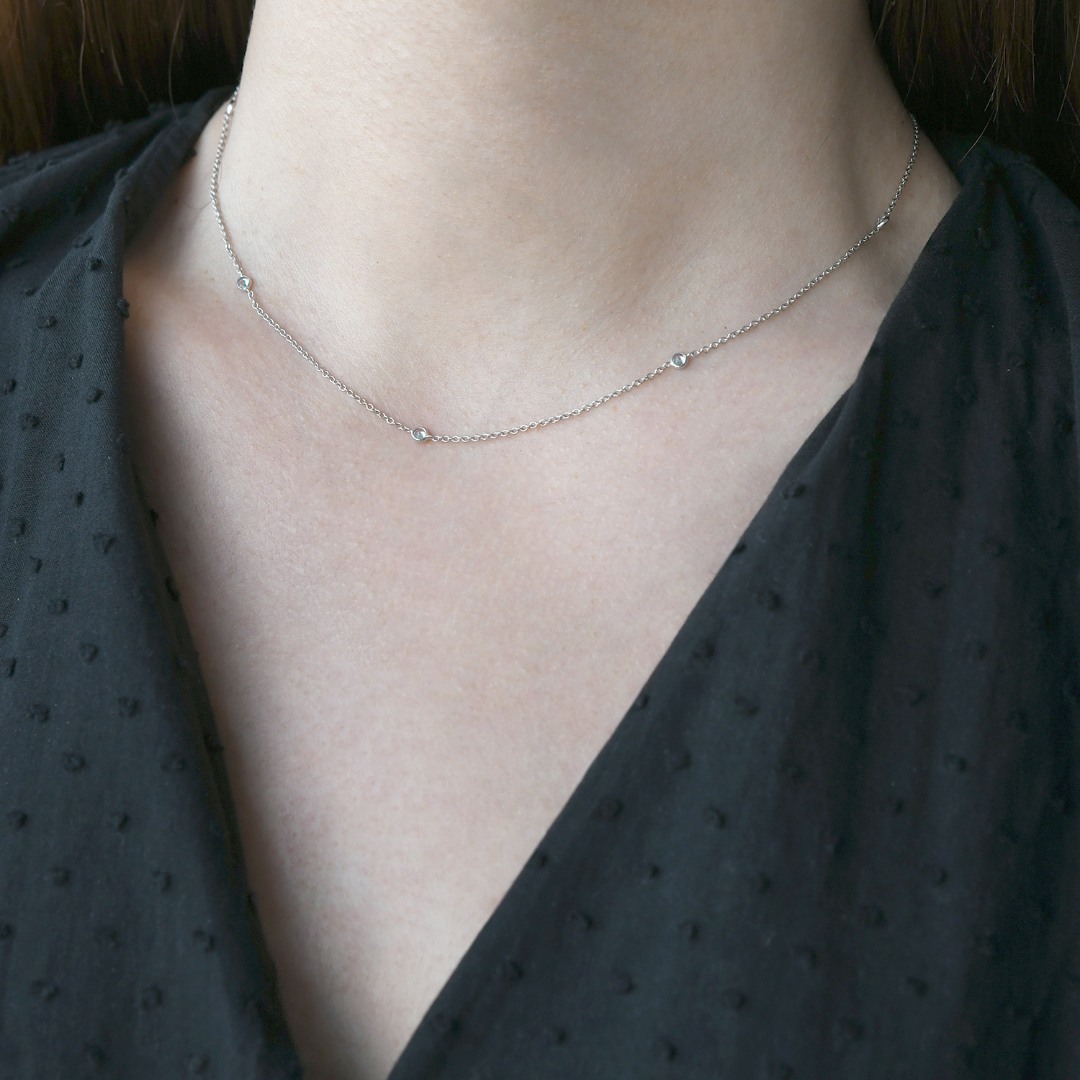 Colier din aur alb de 14K cu pietre cubic zirconia.