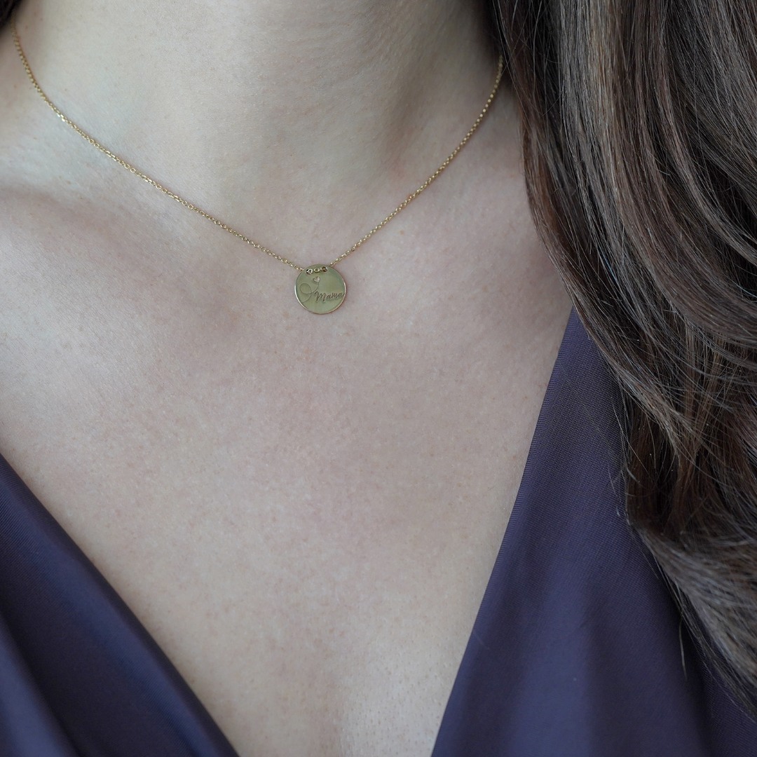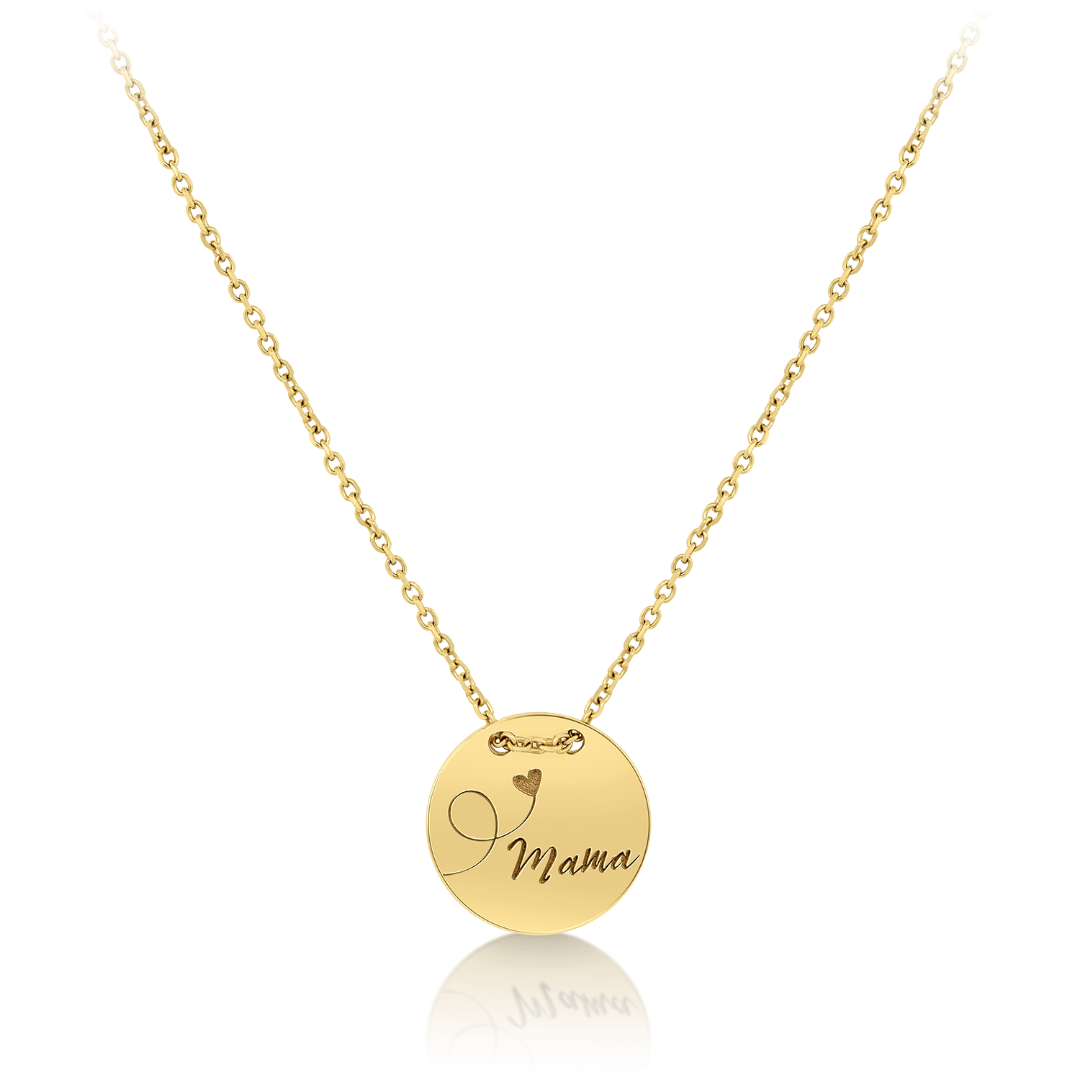 Lanț cu pandantiv gravat cu "mama", din aur alb de 14K.