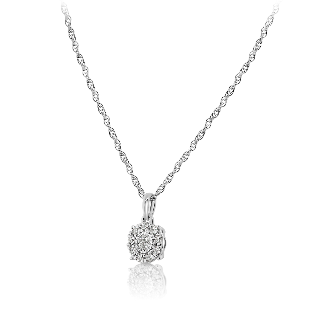 Lanț din aur alb de 14K și pandantiv cu Diamante naturale