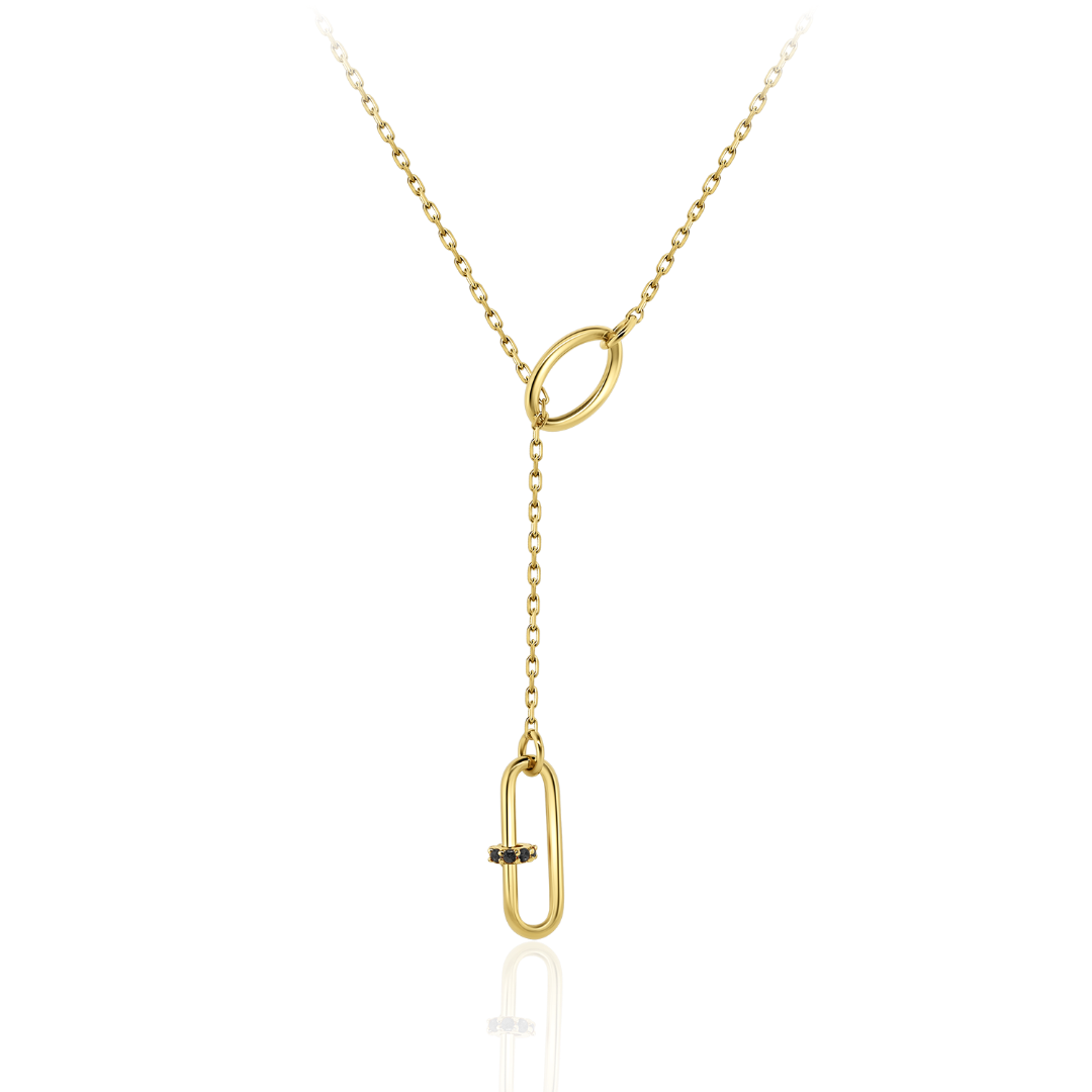 Lanț din aur galben de 14K, cu pandante și pietre Cubic Zirconia Negre.