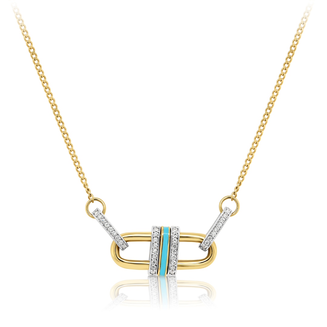 Lanț din aur galben de 14K, pandantiv cu Email și pietre Cubic Zirconia.