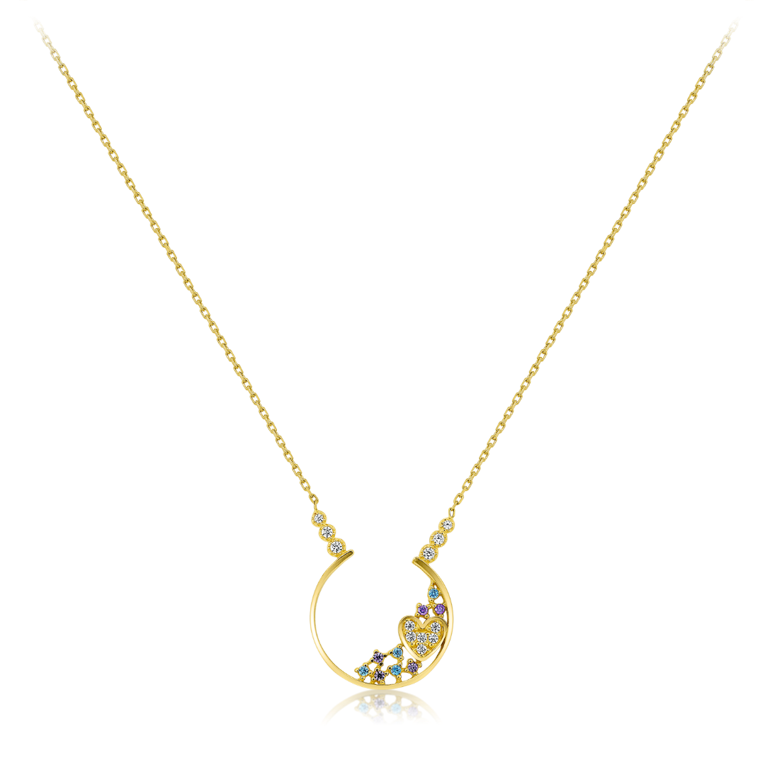 Lanț din aur galben de 14K și pandantiv cu pietre Cubic Zirconia colorate.