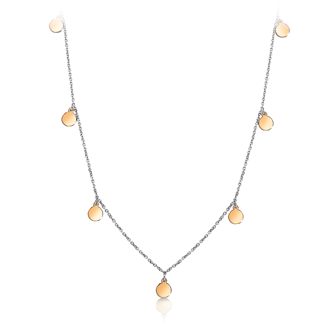 Lanț din aur alb de 14K cu pandantive rotunde din aur roz.