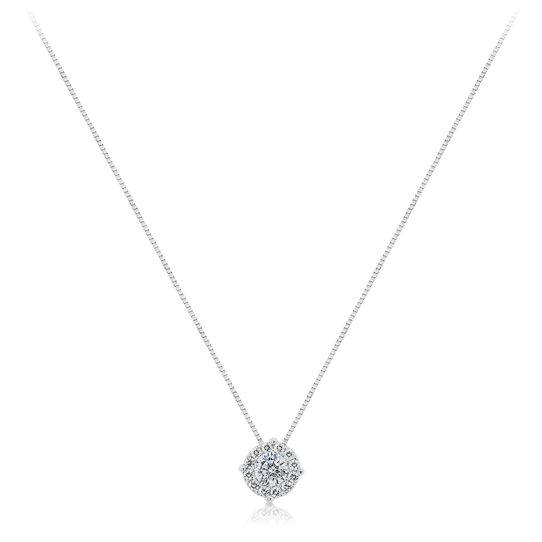 Lanț din aur alb de 14K și pandantiv cu pietre Cubic Zirconia albe.