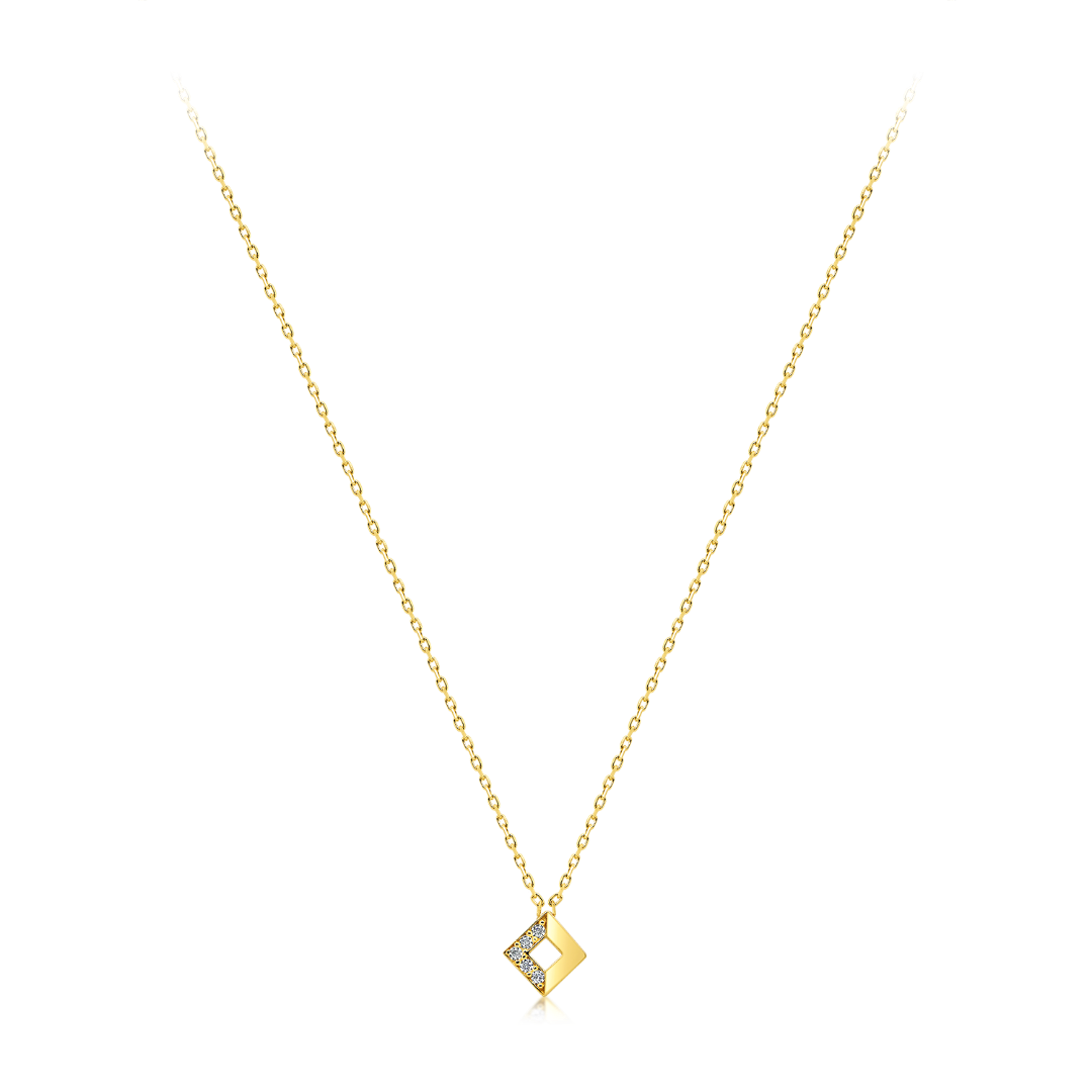 Lanț din aur galben de 14K și pandantiv cu pietre cubic zirconia.