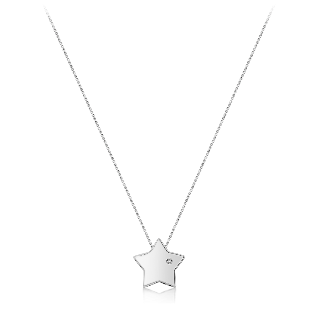 Lanț din aur alb de 14K, cu pandantiv stea și piatră cubic zirconia.
