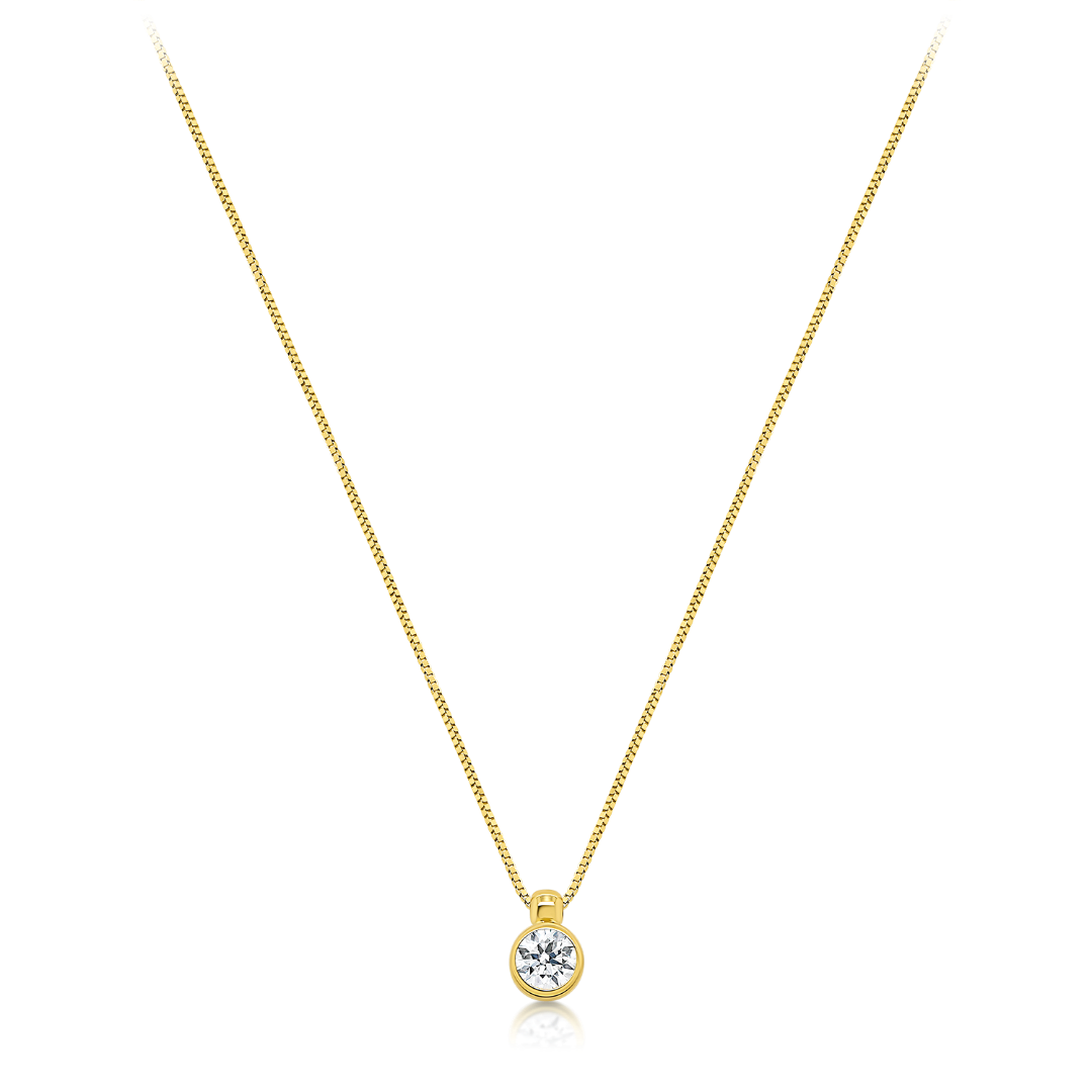 Lanț din aur galben de 14K și pandantiv cu piatră Cubic Zirconia albă.