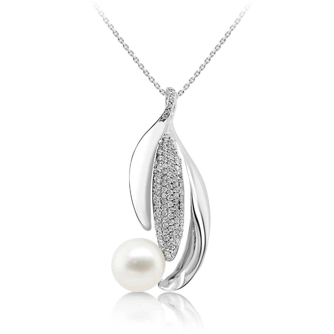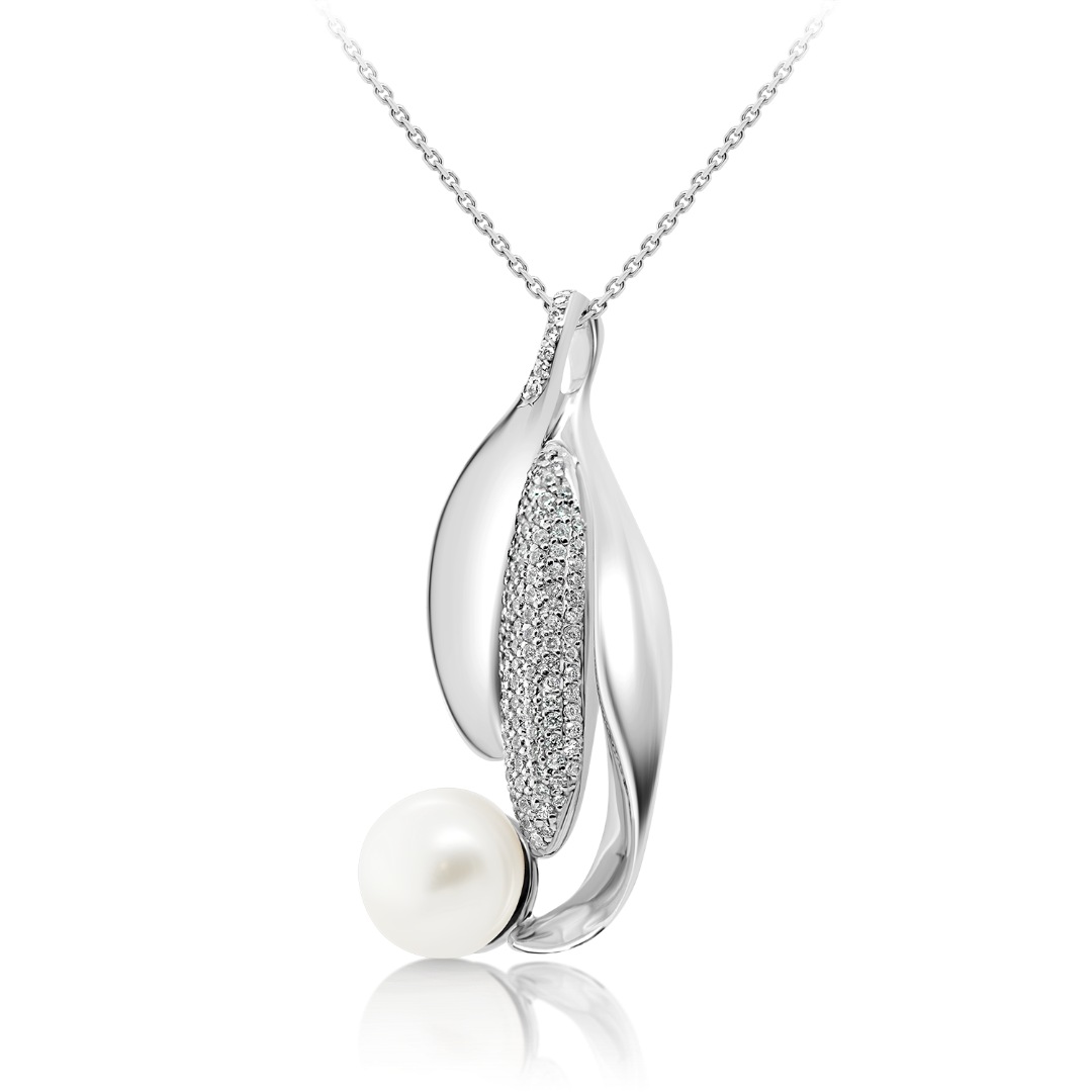 Lanț din aur alb de 14K și pandantiv cu Perlă