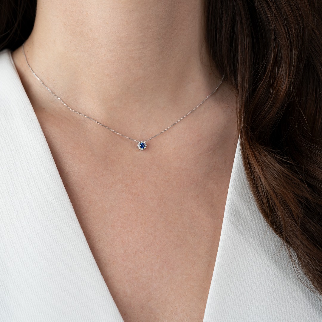 Lanț cu pandantiv din aur alb de 14K.