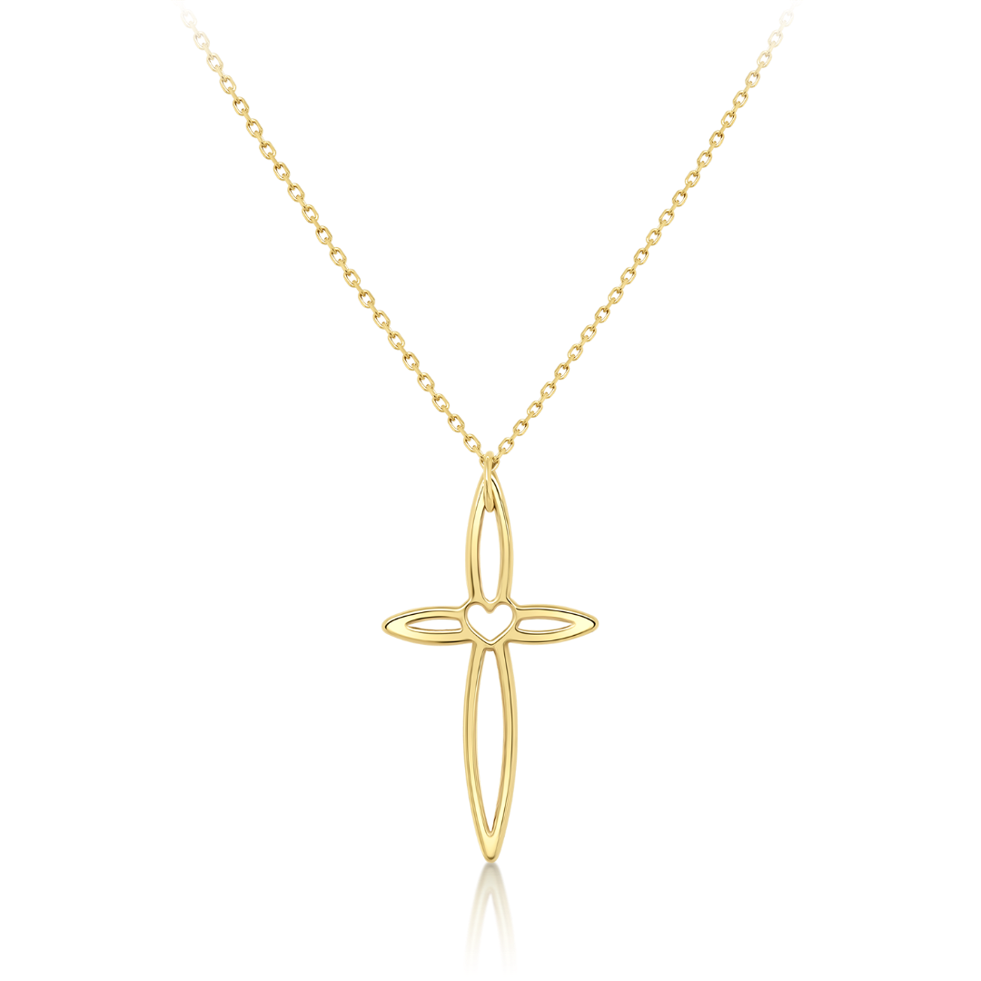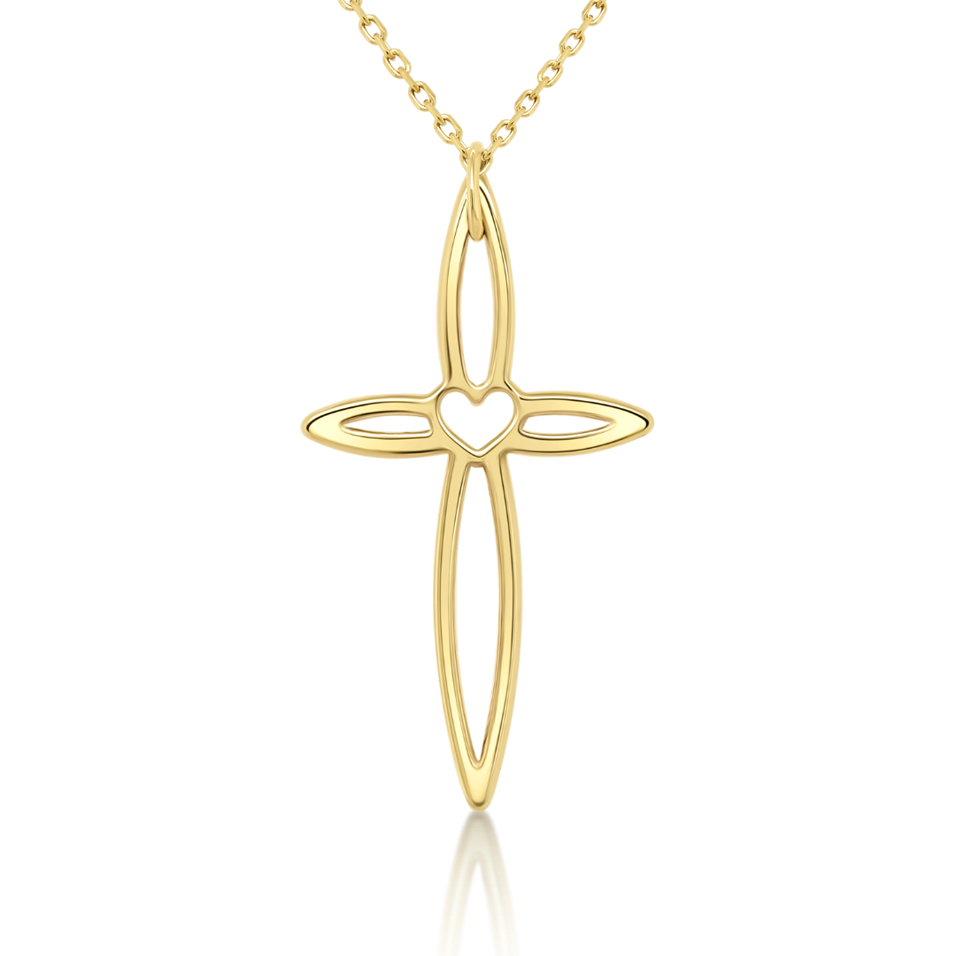 Lanț cu pandantiv cruce din aur galben de 14K.