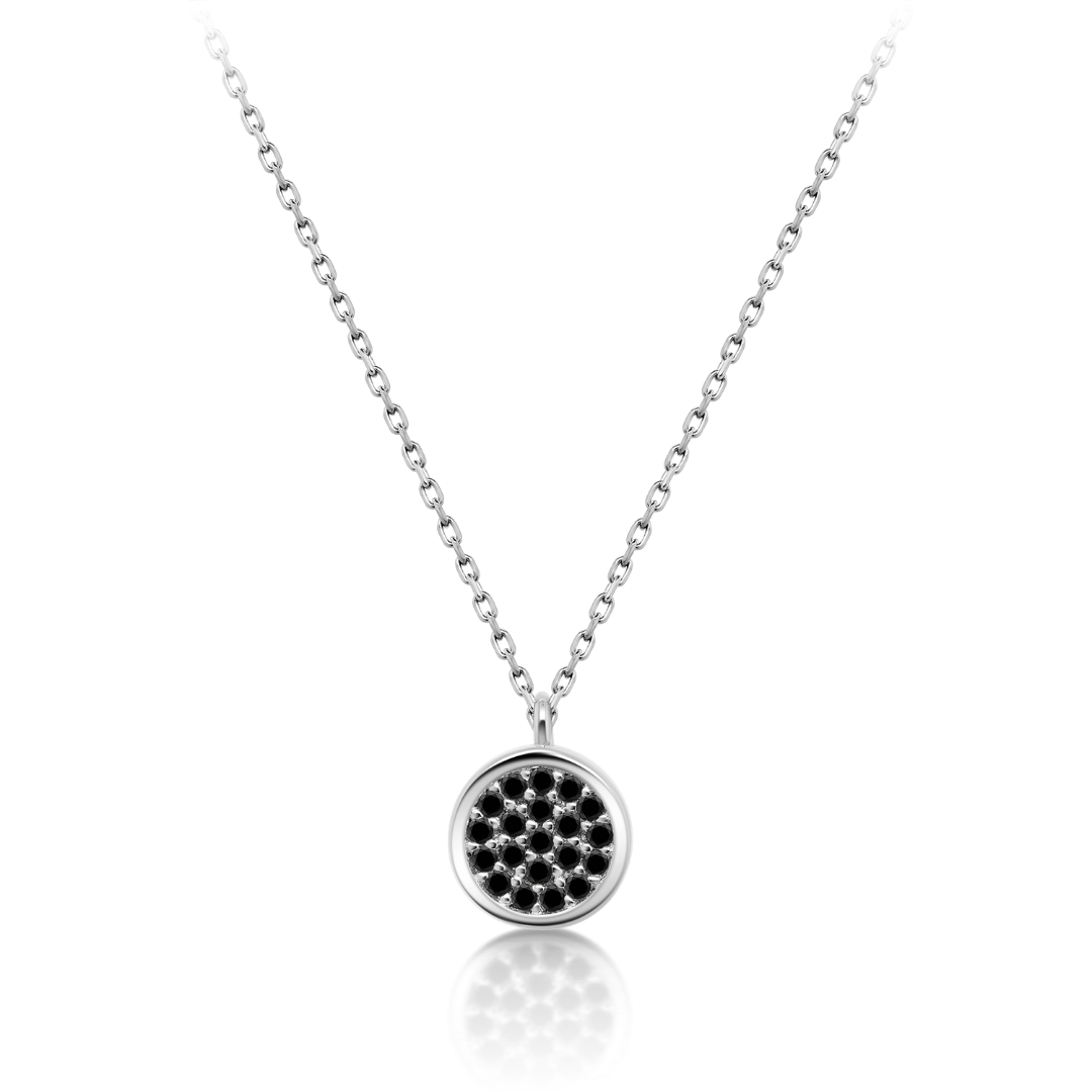 Lanț din aur alb de 14K și pandantiv cu pietre cubic zirconia negre.