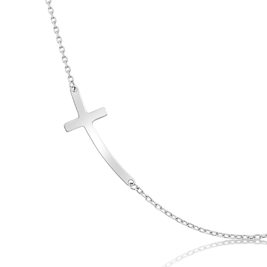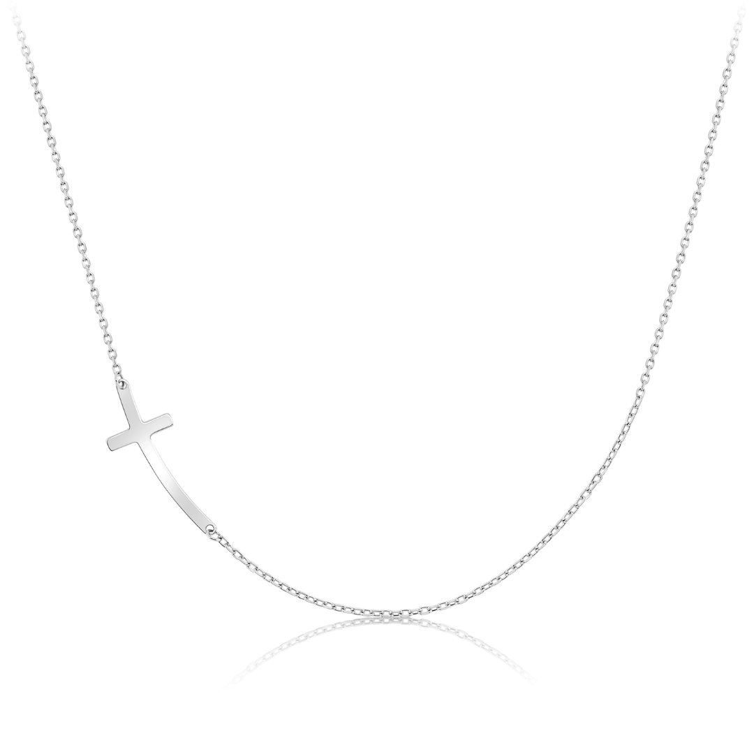 Lanț cu pandantiv cruce din aur alb de 14K.