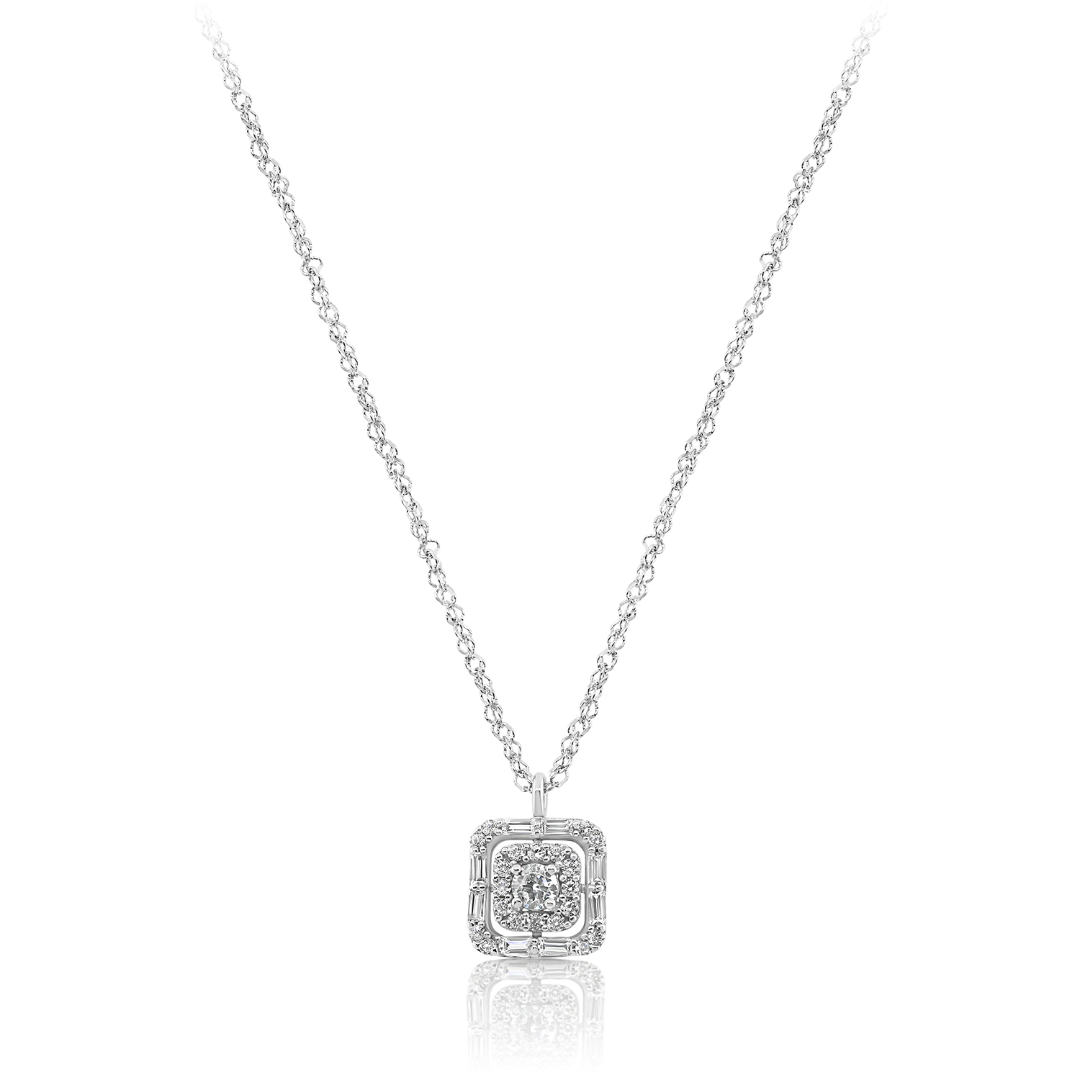 Lanț din aur alb de 14K și pandantiv cu pietre cubic zirconia.