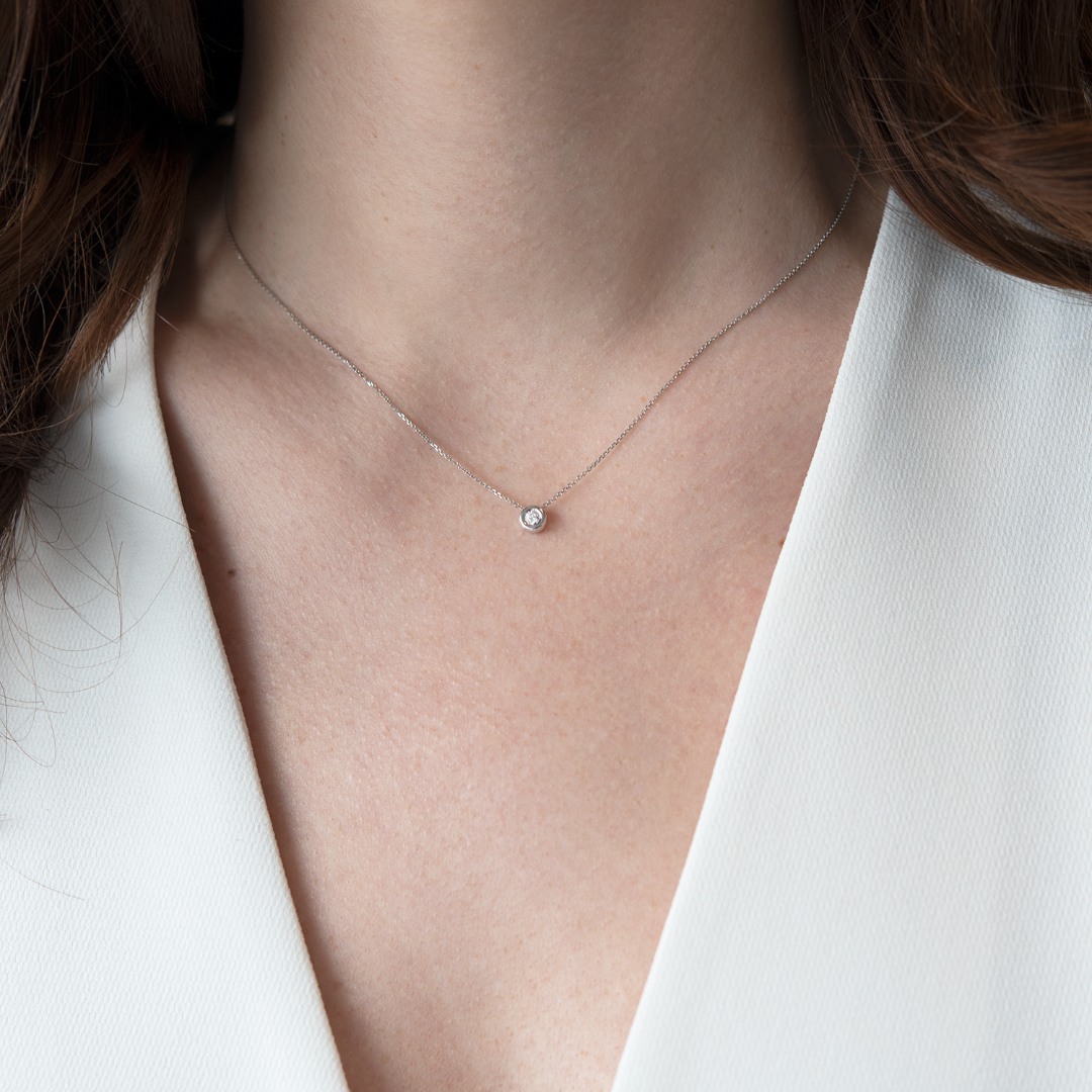 Lanț cu pandantiv din aur alb de 14K