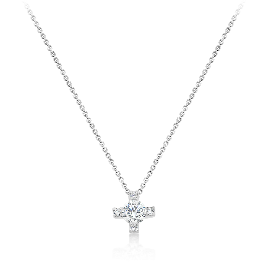 Lanț cu pandantiv din aur alb de 14K cu pietre cubic zirconia.