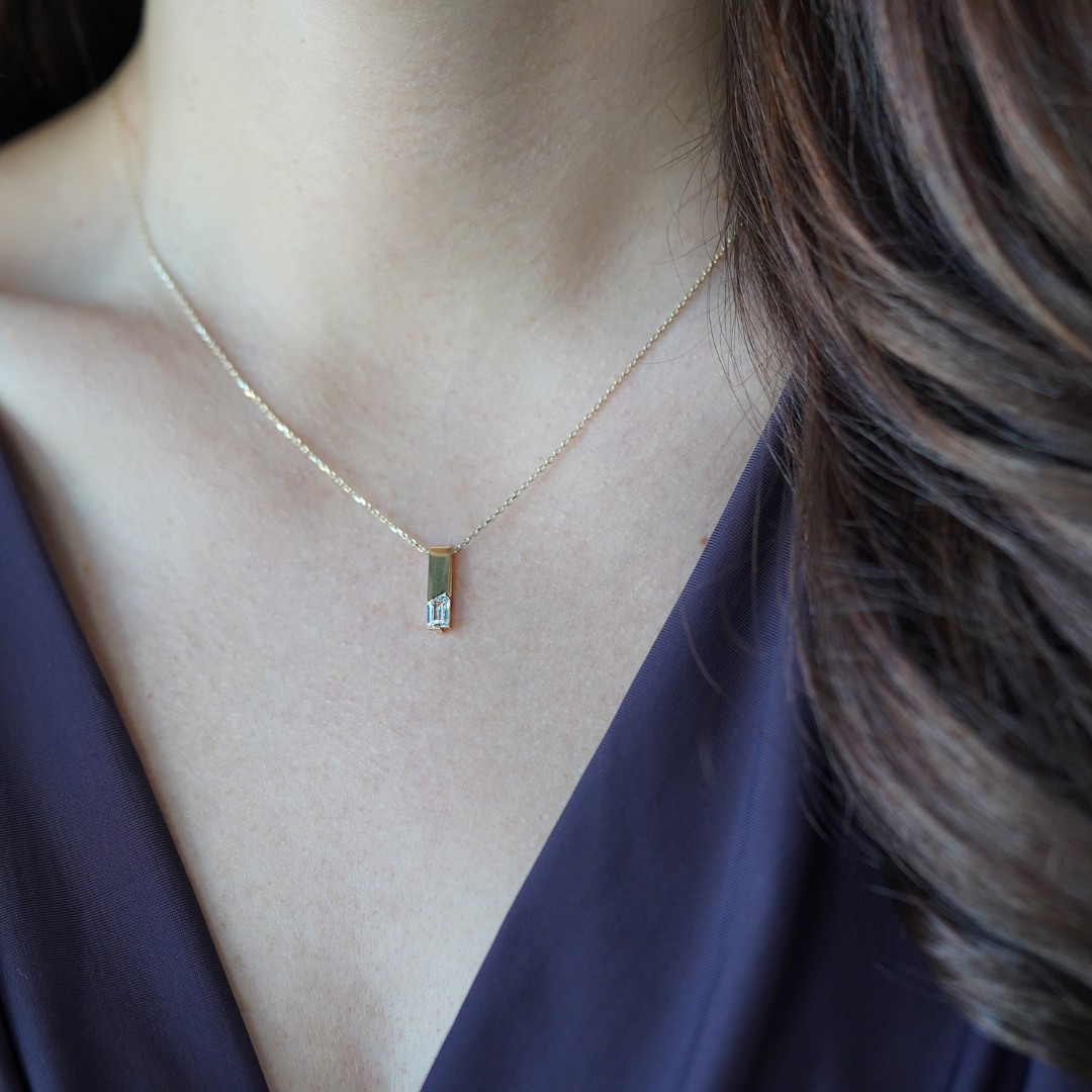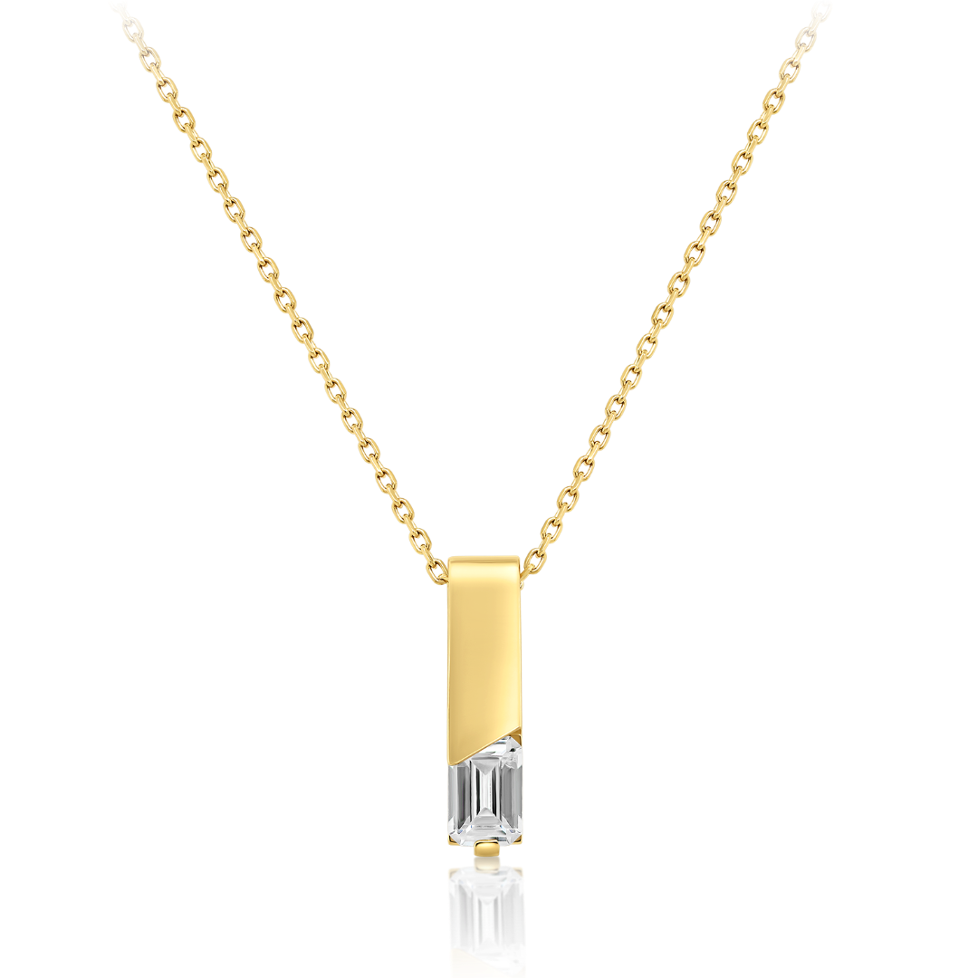 Lanț din aur galben de 14K și pandantiv cu piatră zirconia.