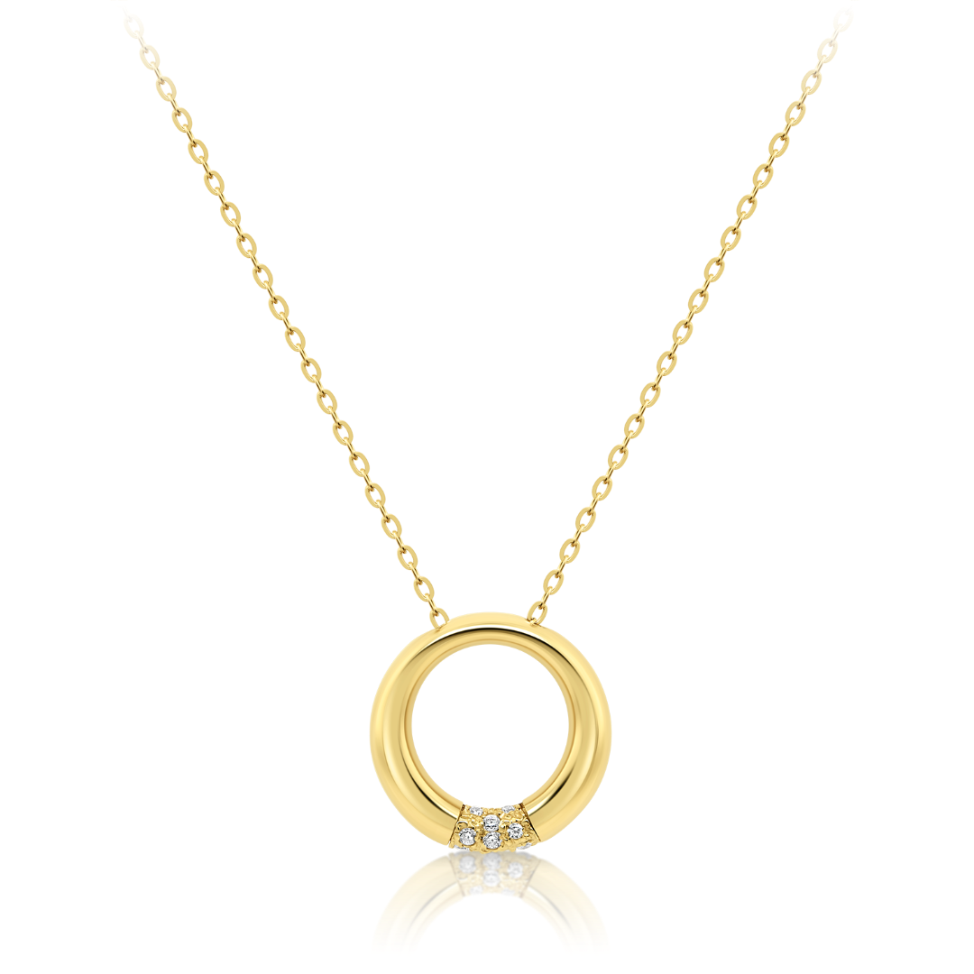 Lanț din aur galben de 14K și pandantiv cu zirconia incolore.