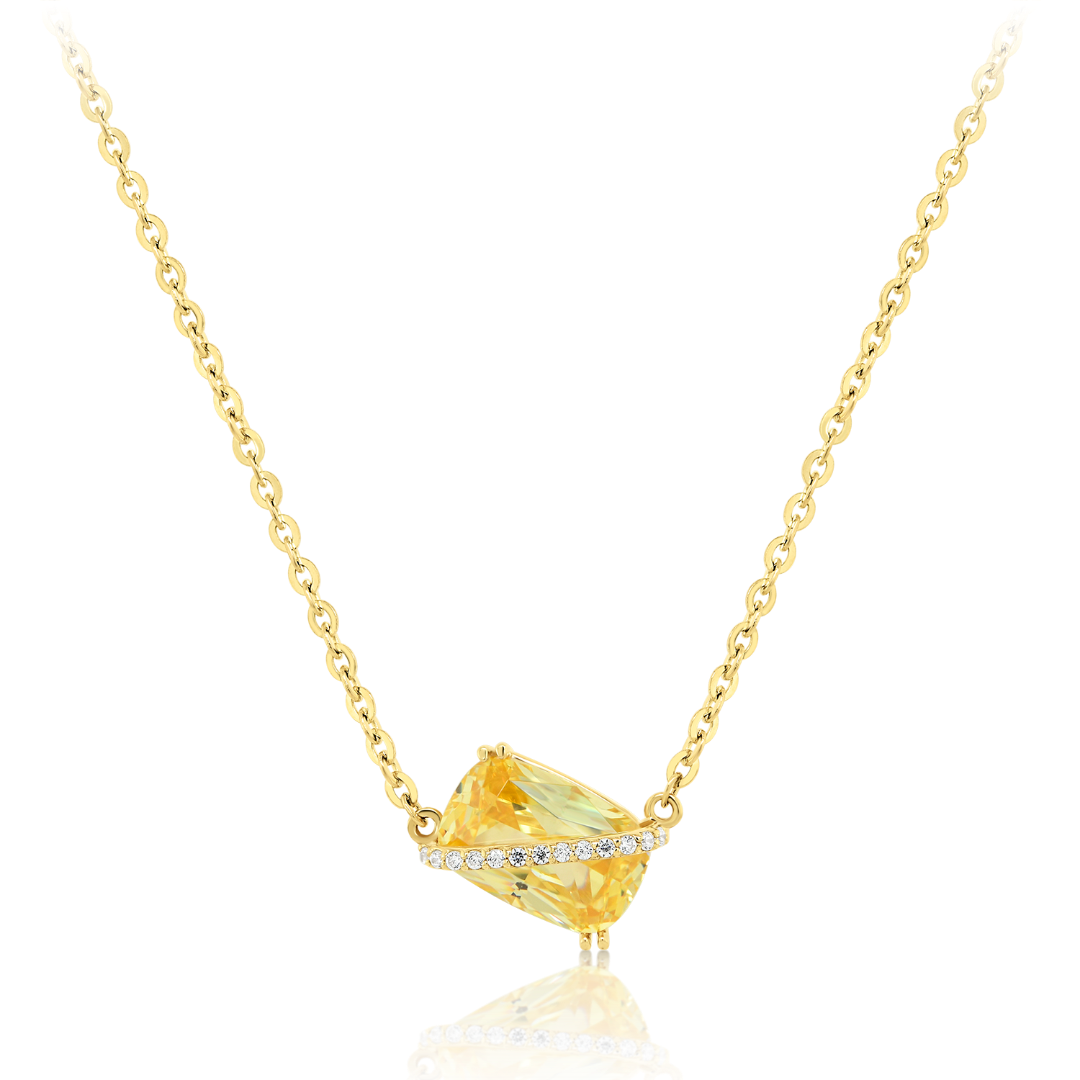 Lanț din aur galben de 14K și pandantiv cu pietre cubic zirconia.