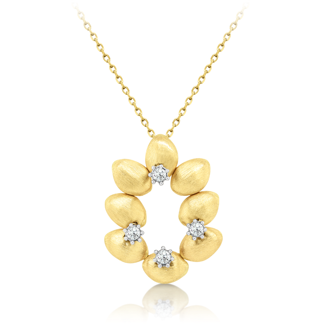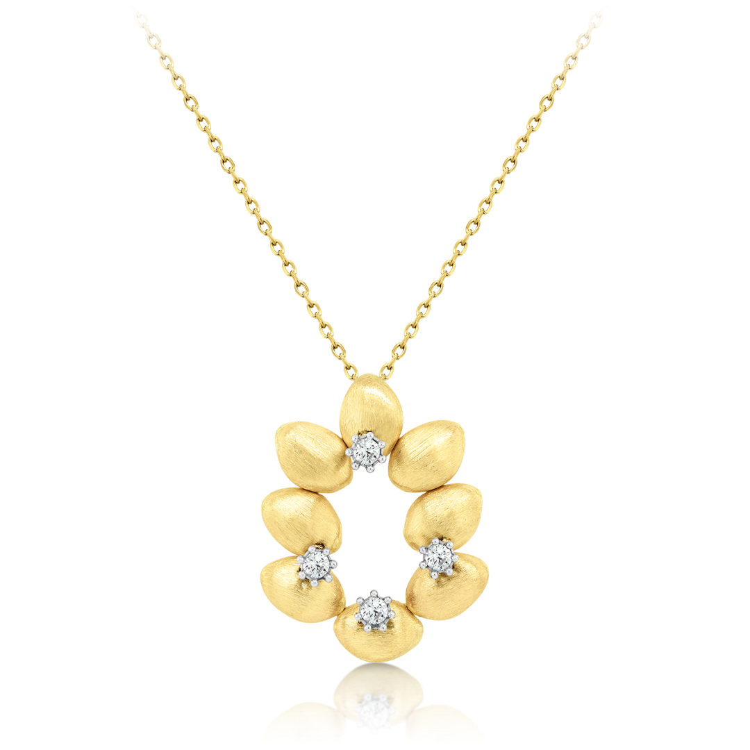 Lanț din aur galben de 14K și pandantiv cu elemente satinate.