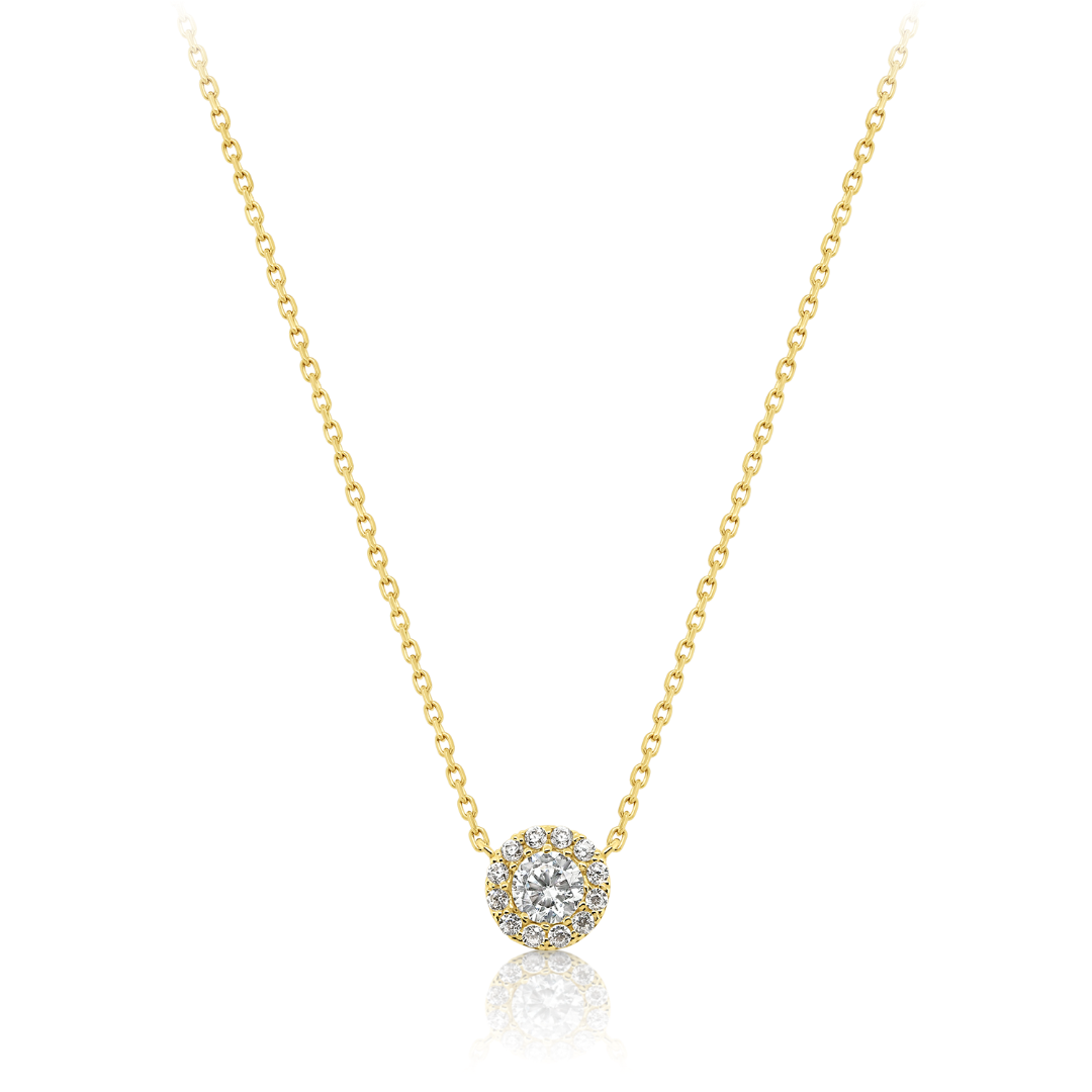 Lanț cu pandantiv din aur galben de 14K și pietre cubic zirconia.