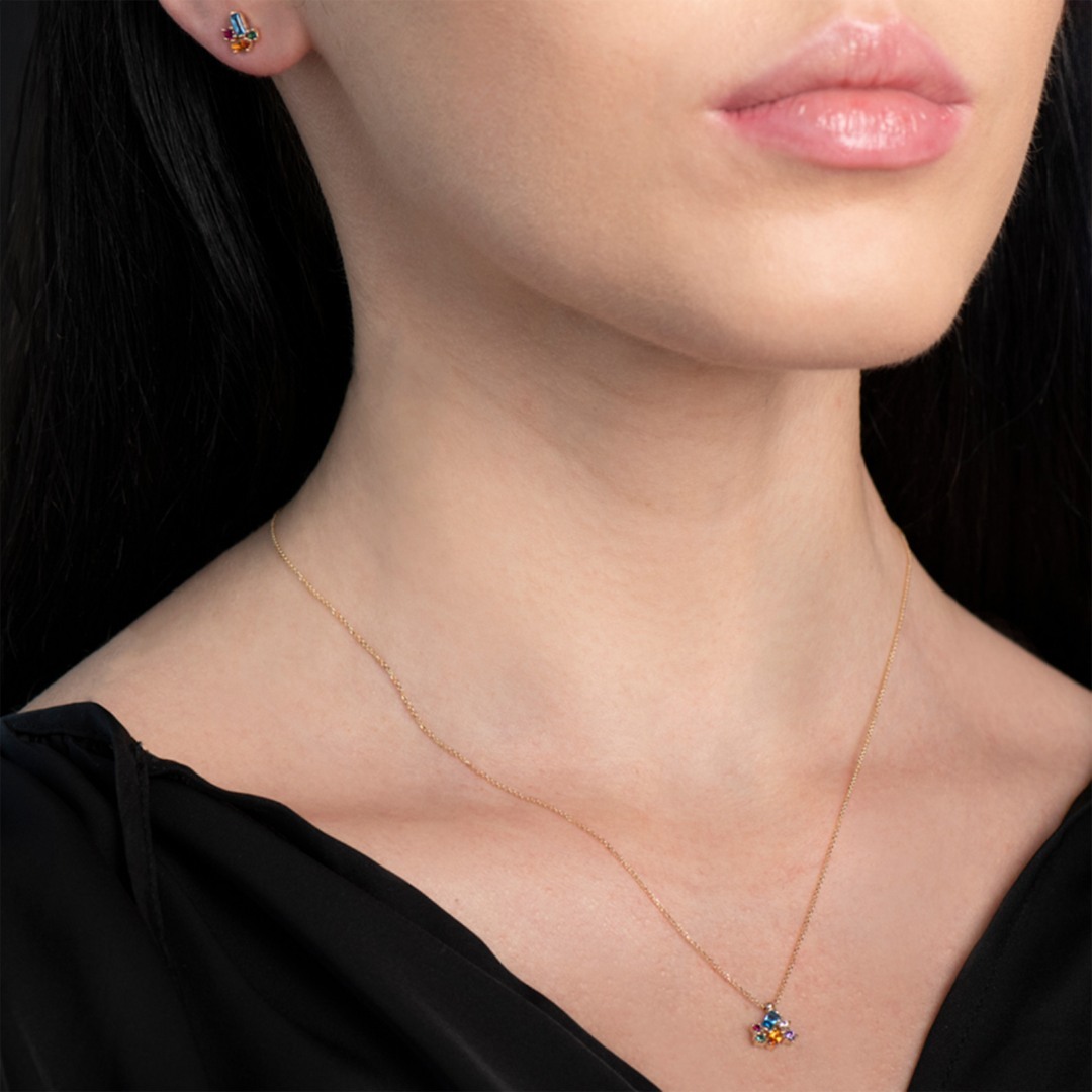 Lanț cu pandantiv din aur galben de 14K și pietre Cubic Zirconia.