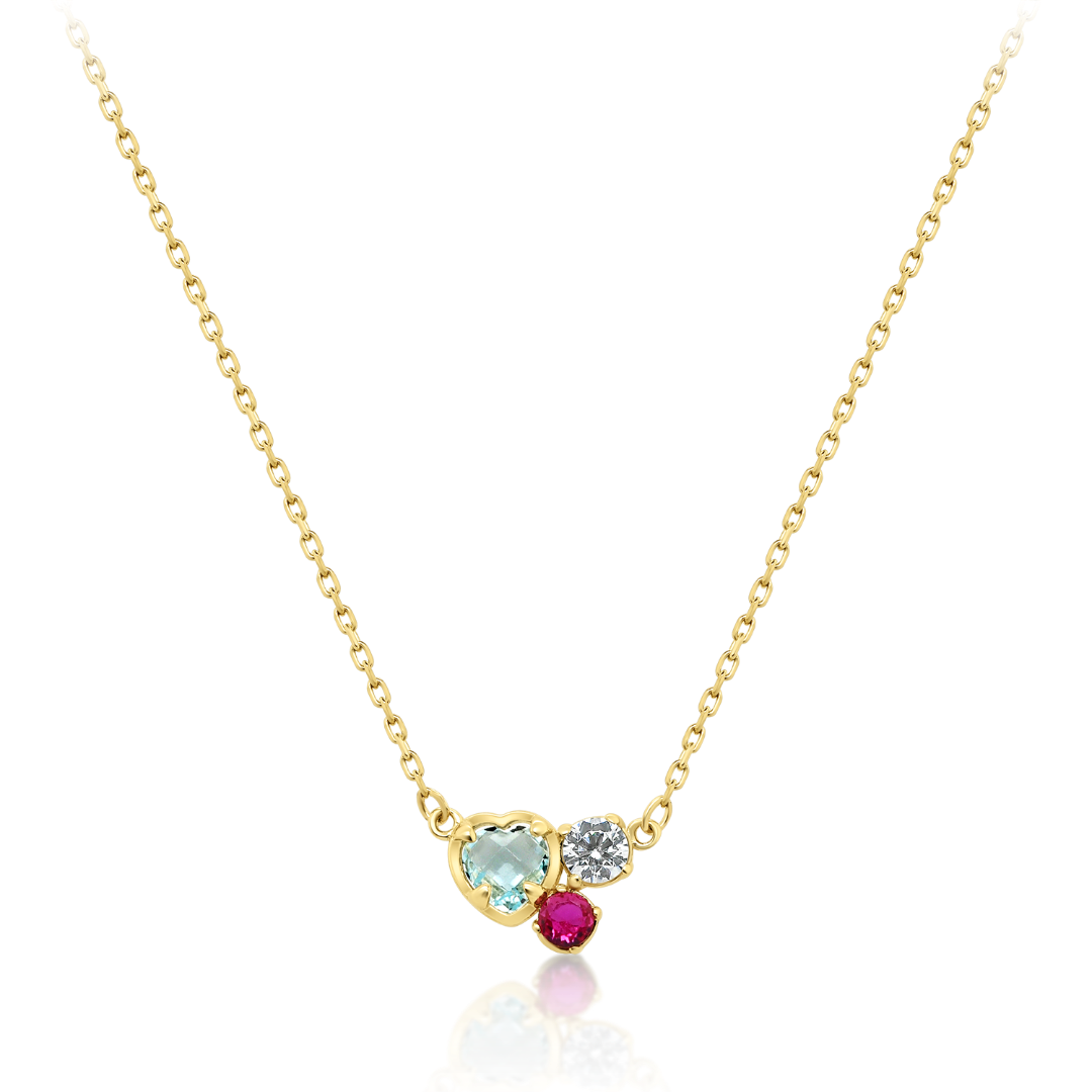 Lanț cu pandantiv din aur galben de 14K și pietre cubic zirconia colorate.