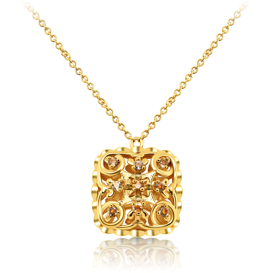 Lanț din aur galben de 14K și pandantiv cu zirconia colorate.