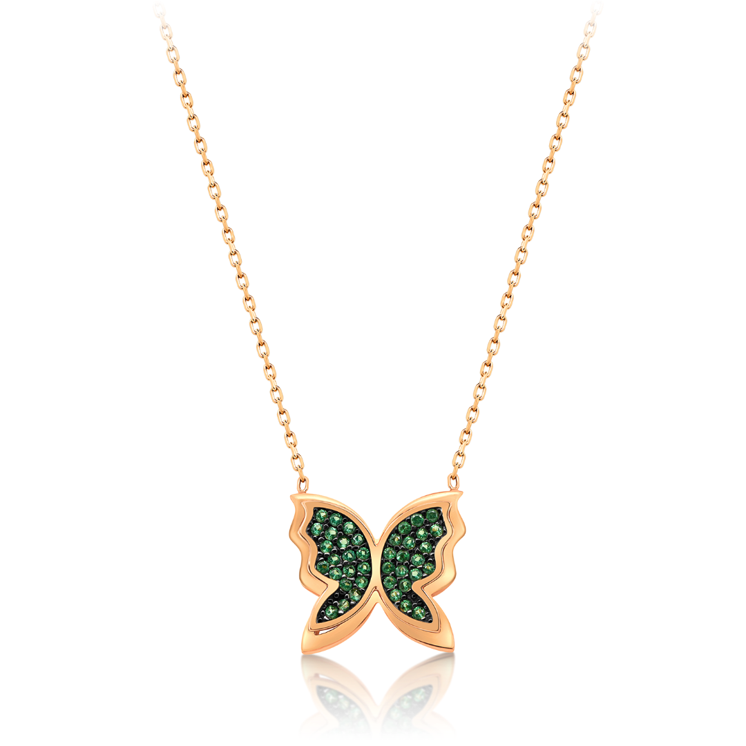 Lanț cu pandantiv fluture din aur roz de 14K